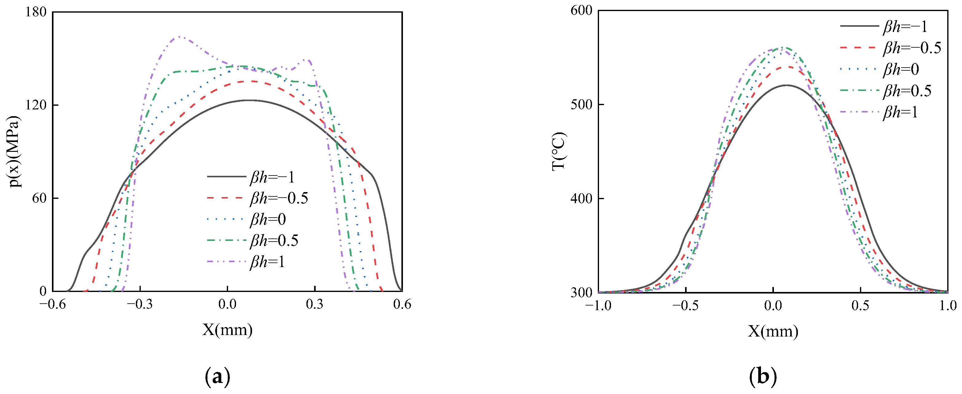 Figure 12a) increases gradually with the friction coefficient, leading to a corresponding increase in the maximum value of the surface temperature