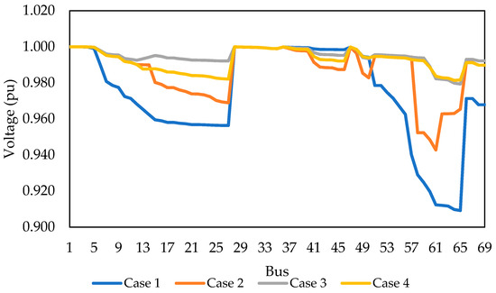 Statistical analysis results for Cases 2–4 (69-Bus system).