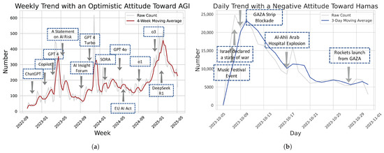 - Artificial general intelligence (AGI): Captures relatively long-term, gradual opinion changes on an evolving technological topic.