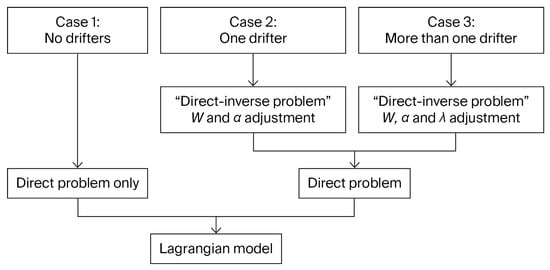 Computation flowchart for the three cases of drifting buoy availability in the SAR process.
