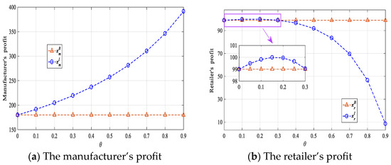 Figure 6b, when the manufacturer can accurately capture the CSR degree information of the retailer, that is, when the information is symmetric, the retailer can effectively improve its own revenue by implementing CSR within a certain range (