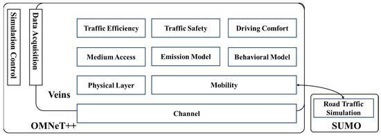 - Martinez, F.J.; Toh, C.K.; Cano, J.C.; Calafate, C.T.; Manzoni, P. A survey and comparative study of simulators for vehicular ad hoc networks (VANETs). Wirel. Commun. Mob. Comput. 2011, 11, 813–828. [Google Scholar] [CrossRef]