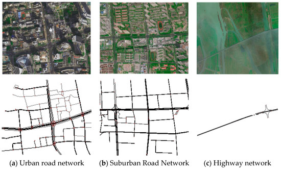 The IoV environment exhibits diverse communication and traffic characteristics across various geographical locations, such as city centers, suburbs, and highways. These differences in road conditions, traffic flow, and accident processing times can significantly impact the effectiveness of IoV authentication and response strategies. Therefore, it is crucial to assess the performance of authentication and traffic accident response solutions in these varied traffic environments. This section focuses on three different road networks: Urban areas, suburbs, and highways, as illustrated in Figure 11. The specific attribute characteristics are shown in Table 6.
