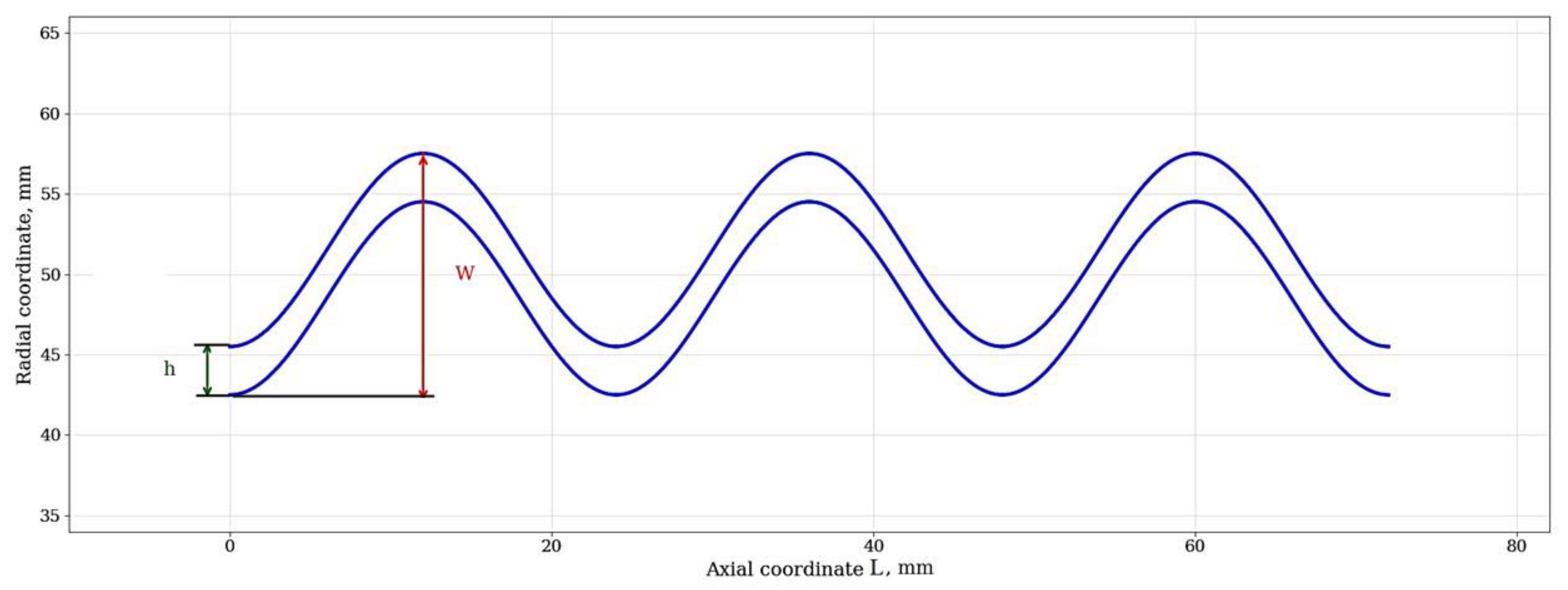 h ranged from 0.3 to 0.7 mm in 0.1 mm increments at a constant number of corrugations (Ng = 8). For