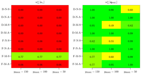 The ABMs introduced in both Equations (35) and (36) are defined in “symmetric” form, which means that the correction applied to the rate ( or ) can be less than or greater than one. Alternatively, ABMs can be redefined as “asymmetric”, i.e., assuming that corrections are applied only to reduce the rate. The choice of asymmetric ABMs is made in cases where the system is regulated with the sole objective of protecting its sustainability, without taking into account its efficiency [12,26,27]: