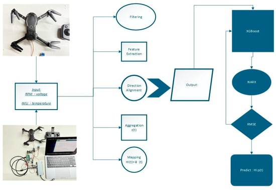 The proposed methodological framework consists of three main components: (i) data collection and preprocessing; (ii) mathematical modeling and health index (HI) development; and (iii) the design and training of the AI iterative prediction framework (XGBoost + NARX).