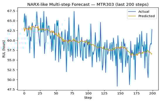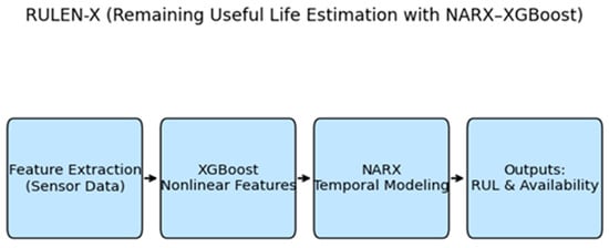 Finally, the benefit of combining XGBoost with NARX lies in their complementary strengths. While XGBoost is great at learning nonlinear features and being interpretable, NARX offers a solid structure for modeling temporal dynamics. Combining the two enables the framework to balance predictive accuracy with mathematical rigor, making it a dependable choice for UAV health prognostics and RUL forecasting.