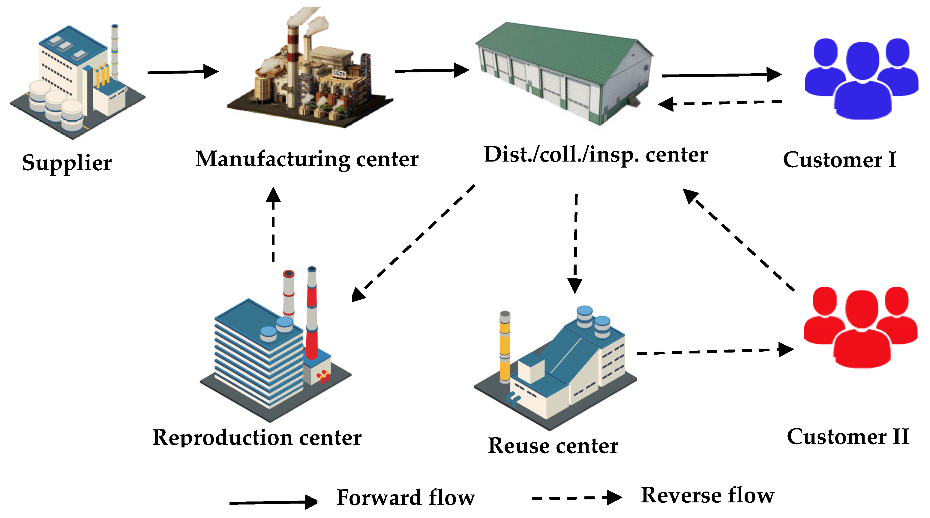- Delivering new products to first-hand customers, collecting returned goods from all customers, and examining these goods to decide whether to send them to reuse or re-production facilities are the responsibilities of distribution–collection and inspection centers.