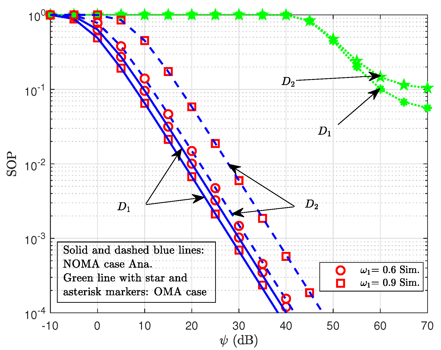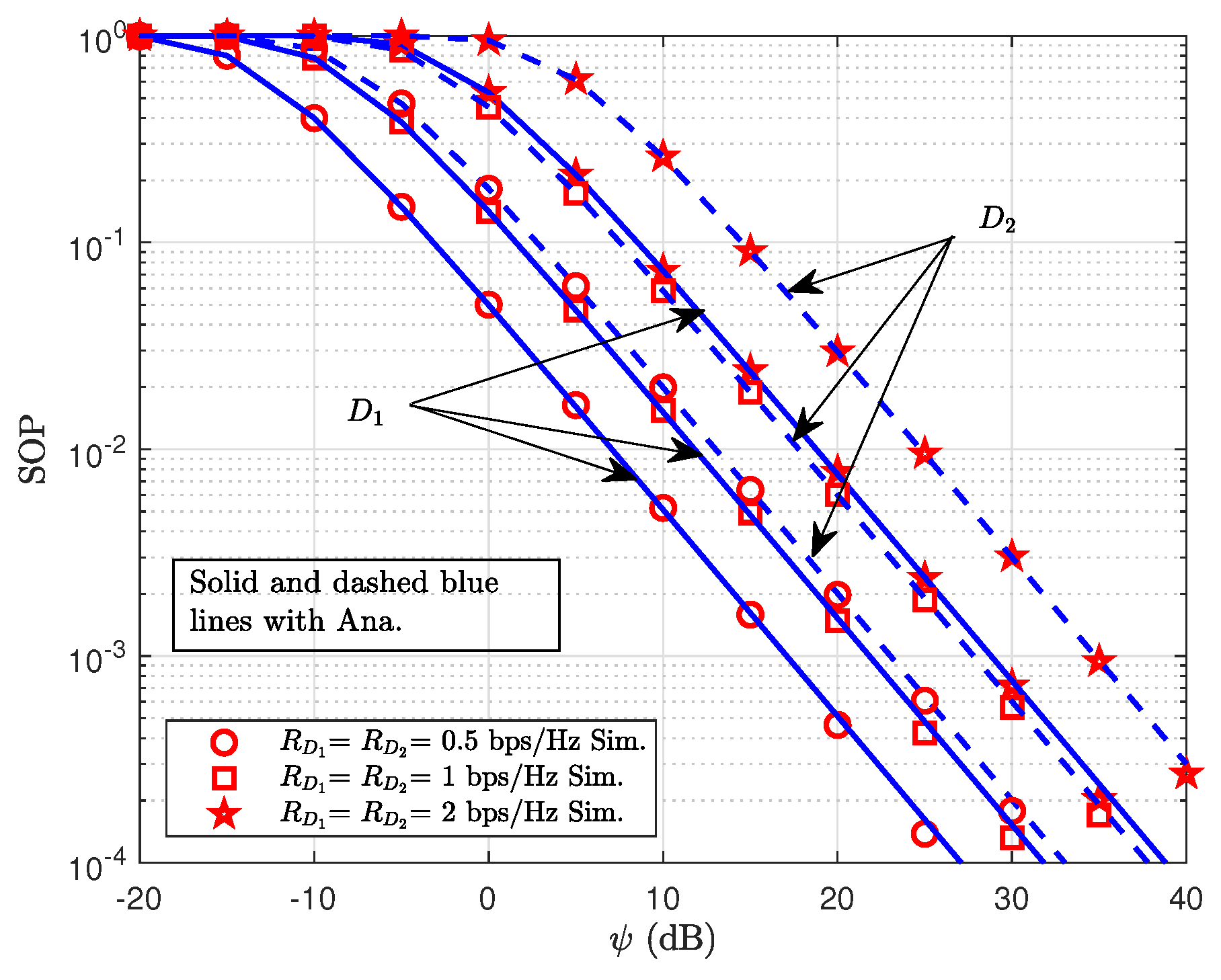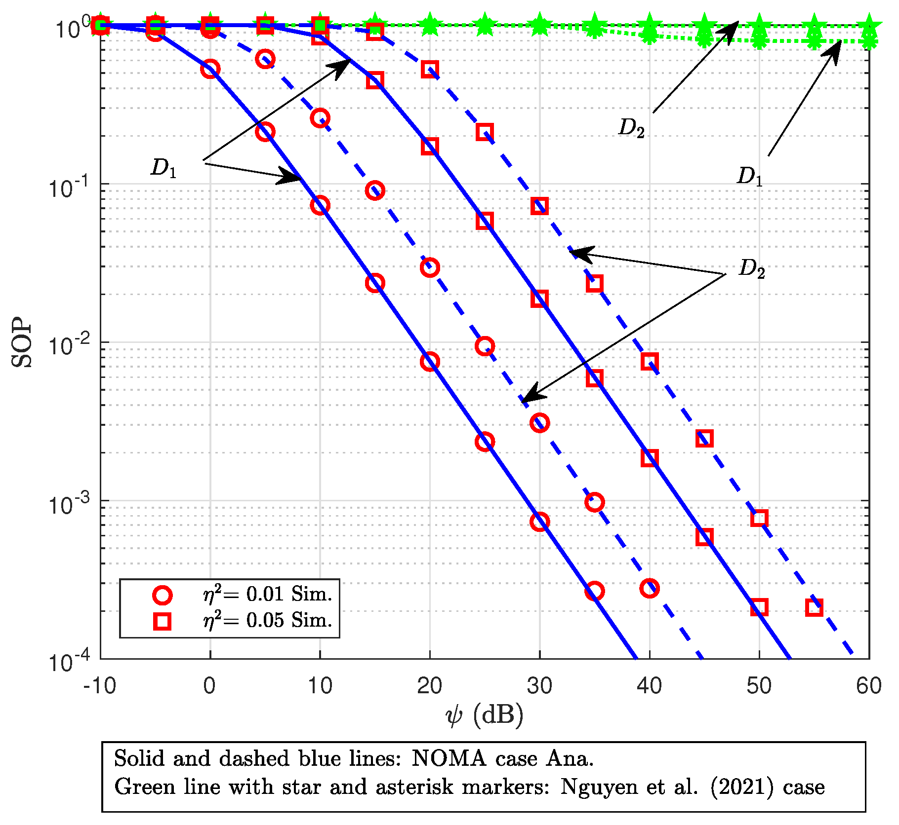 - Moreover, the proposed approach is benchmarked against conventional orthogonal multiple access (OMA)-based schemes and the related model in [19]. The results clearly demonstrate superior reliability and security, emphasizing its effectiveness and potential applicability in realistic communication scenarios.