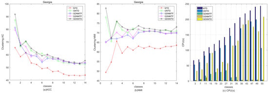 Figure 3 shows the clustering performance on the Georgia, COIL20, and Iris datasets. It can be observed that the proposed GDSNTD method surpasses all other compared methods.