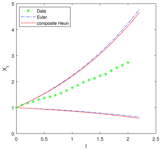 where ∈ is a relaxation parameter. If , the composite Heun scheme (3) reduces to the Heun scheme (2). Since is a uncertain process, the uncertain measure of is zero, i.e., . Therefore, according to the first equation in Equation (3), we obtain