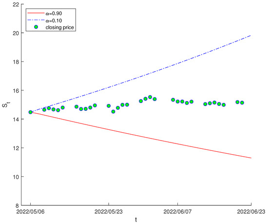 We consider the closing price for MF stock from 6 May to 2 August 2022 with 62 total trading days, which are illustrated in Table 7. Assume that the closing price of MF stock follows the following uncertain delay stock model
