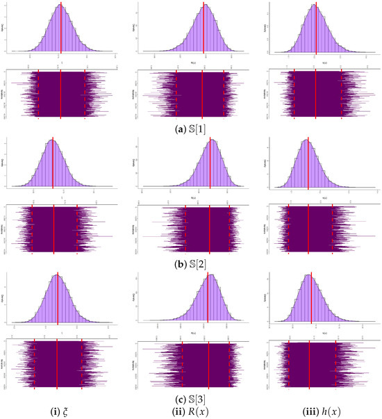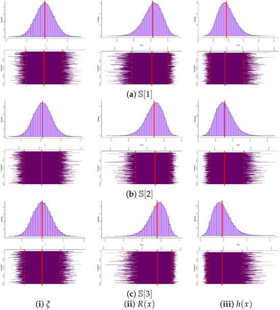 Convergence diagnostics of the MCMC chains for , , and are presented in Figure 10, where trace and posterior density plots are supplemented with the posterior mean (red solid line) and the 95% BCI bounds (red dashed lines). The plots confirm stable convergence across all parameters, with an approximately symmetric posterior for , and negatively and positively skewed posteriors for and , respectively. Using 40,000 post–burn-in iterations, we computed summary statistics including the posterior mean, mode, quartiles, standard deviation, and skewness (see Table 17), which are fully consistent with the estimates in Table 16. As shown in Figure 11, all ergodic convergence diagnostics based on (as a representative case) indicate that the running averages of , , and stabilize rapidly after the burn-in period, confirming the ergodicity and satisfactory convergence of the M-H sampler when the sample information are drawn from the River Styx dataset. In addition,Figure 12 compares the 95% ACI[NA]/ACI[NL] and BCI/HPD intervals for and based on the River Styx sample, showing that Bayesian intervals are consistently narrower, thereby reinforcing their higher efficiency.