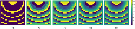 Visualization of 20 × 20 phase maps for different bit data: (a) 1-bit data, (b) 2-bit data, (c) 3-bit data, (d) 4-bit data, and (e) 5-bit data.