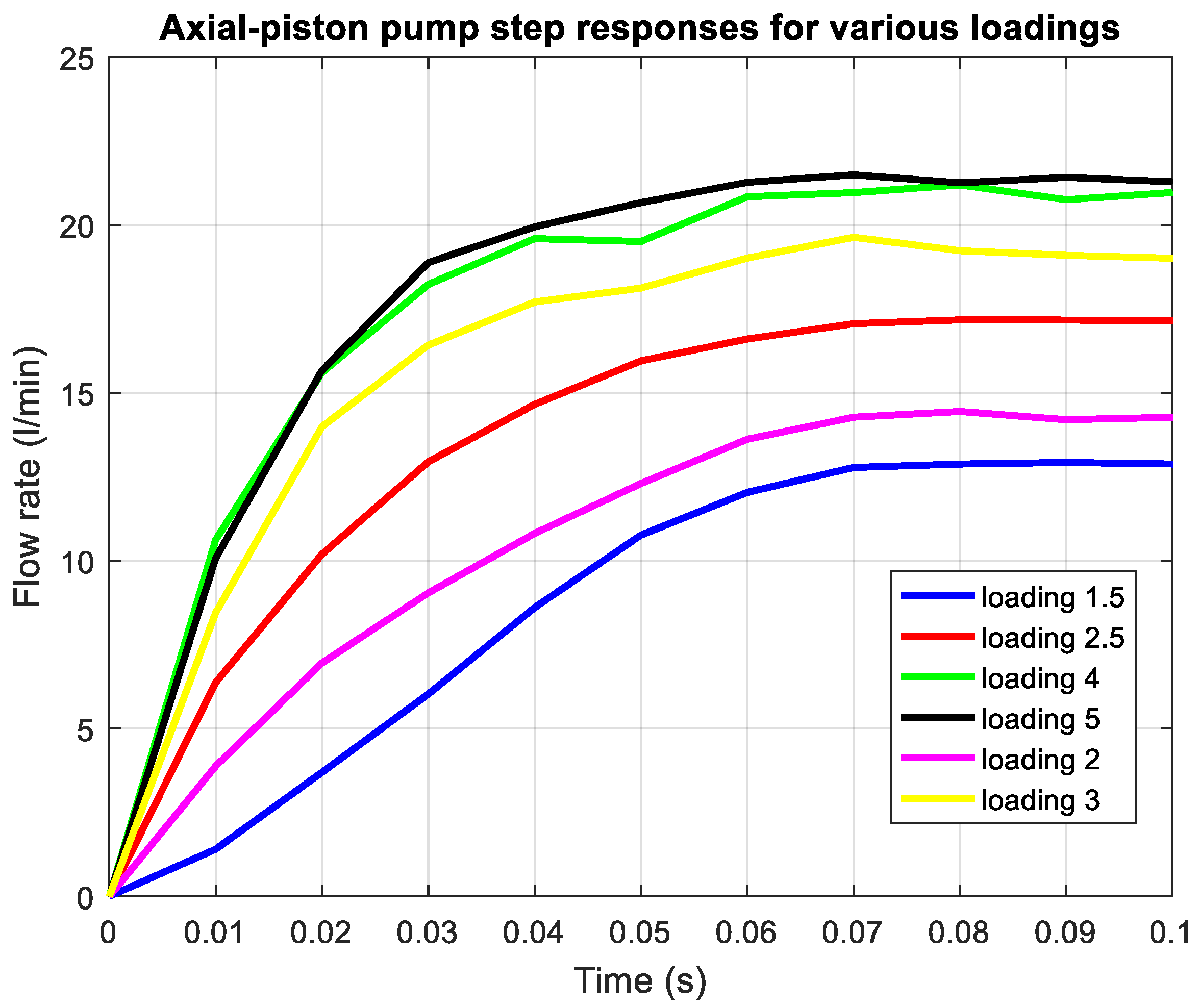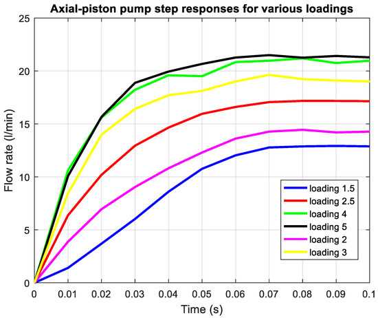 Flow rate step responses for different loadings.