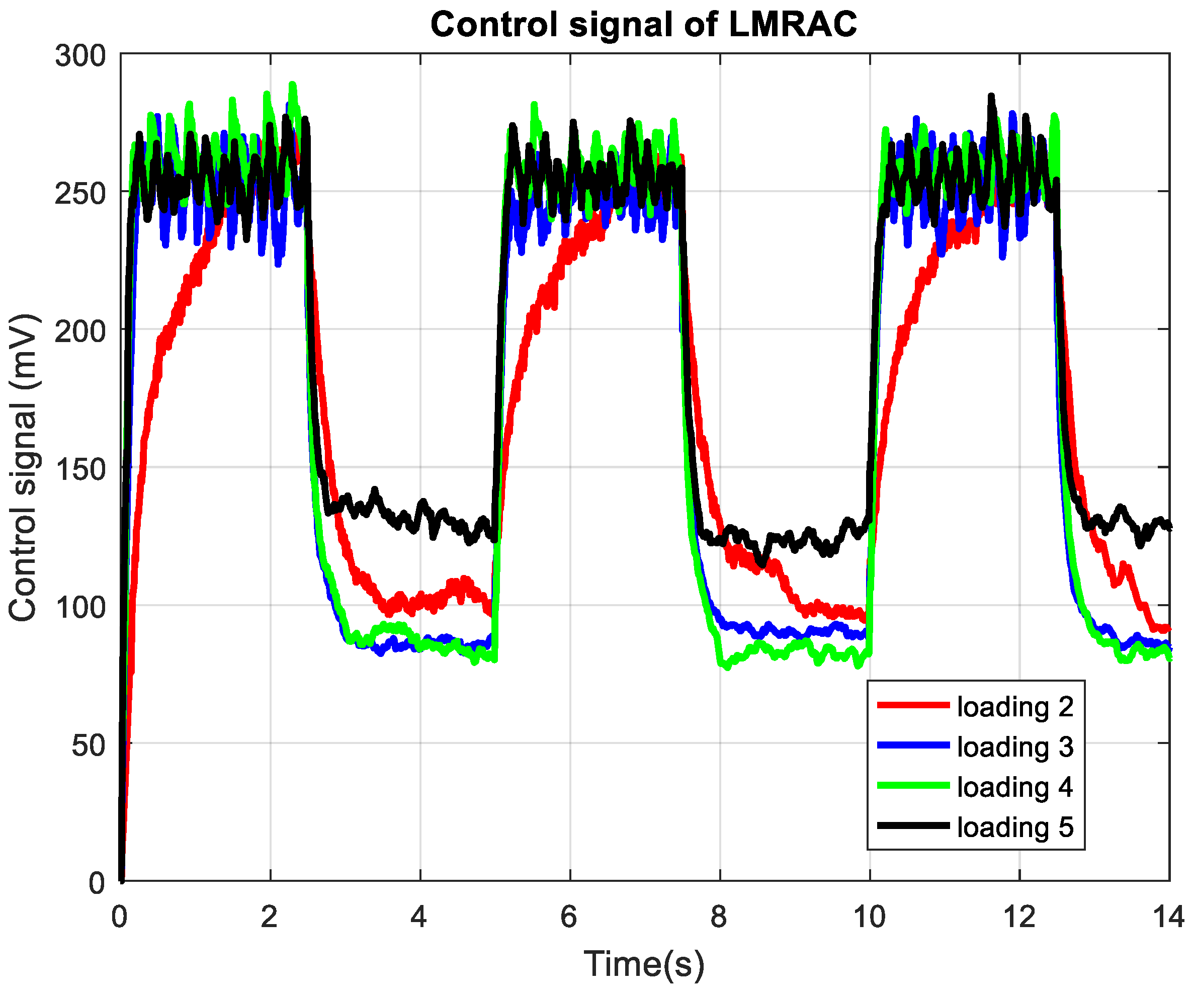 Control signal of LMRAC for various loadings.