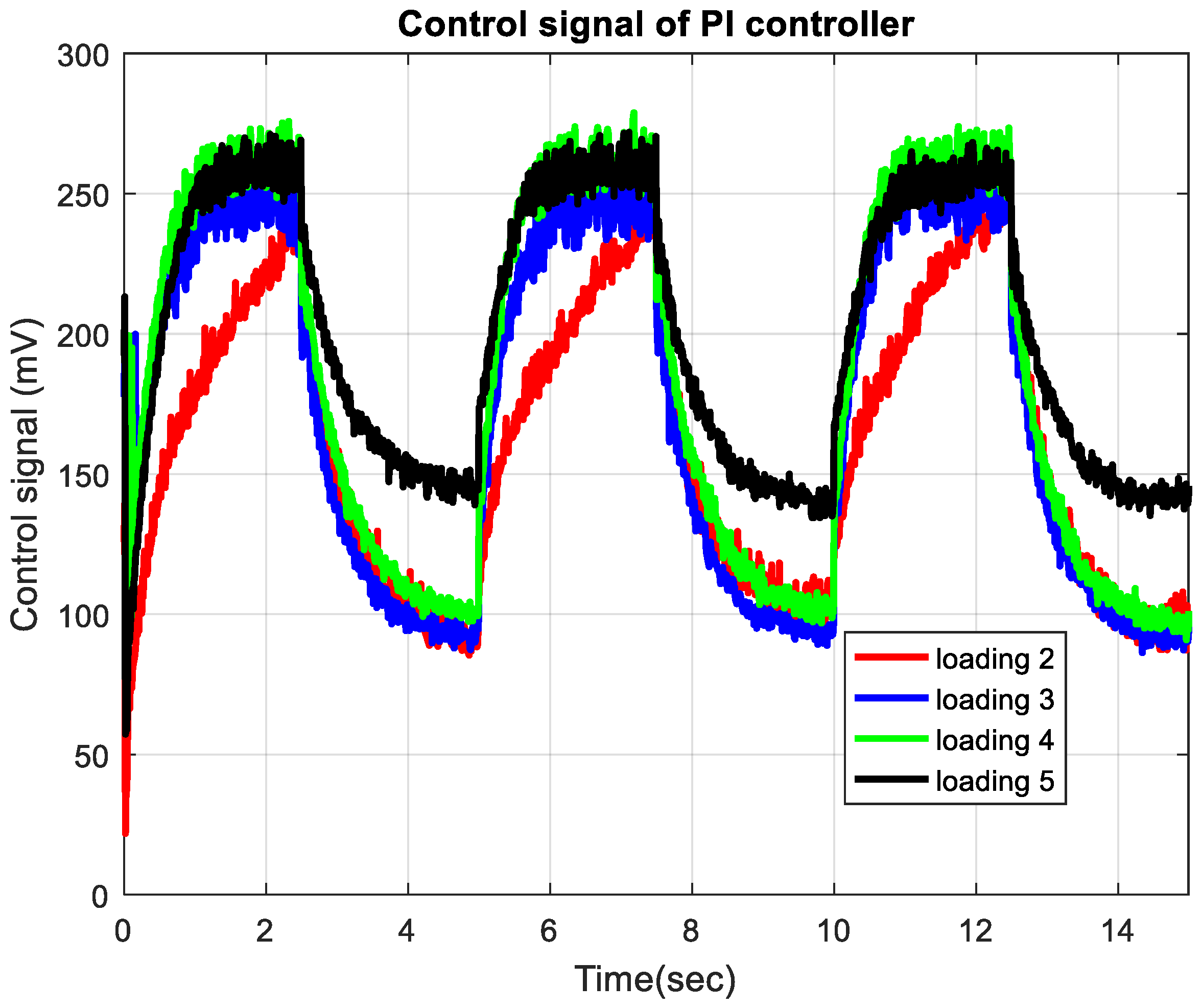Control signal of PI controller for various loadings.