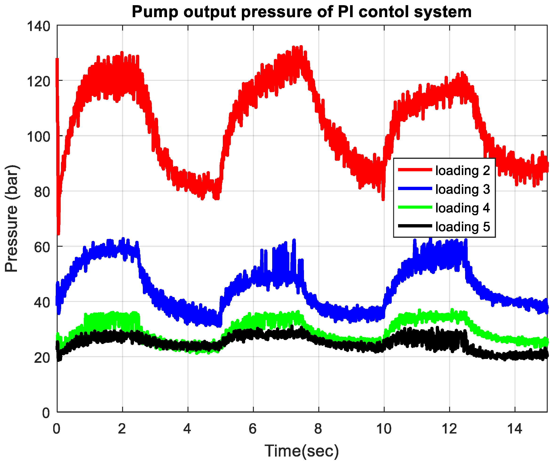 Axial-piston pump output pressure for PI controller system at various loadings.