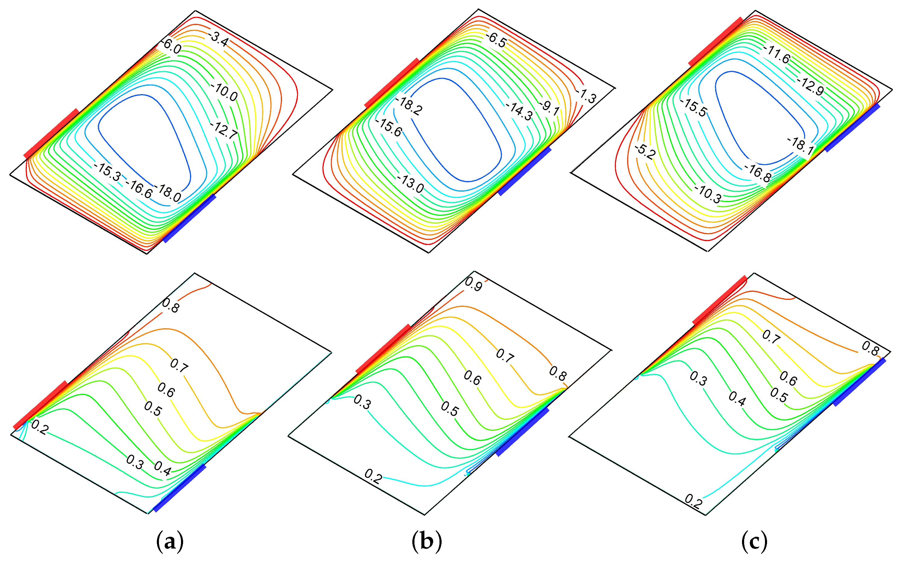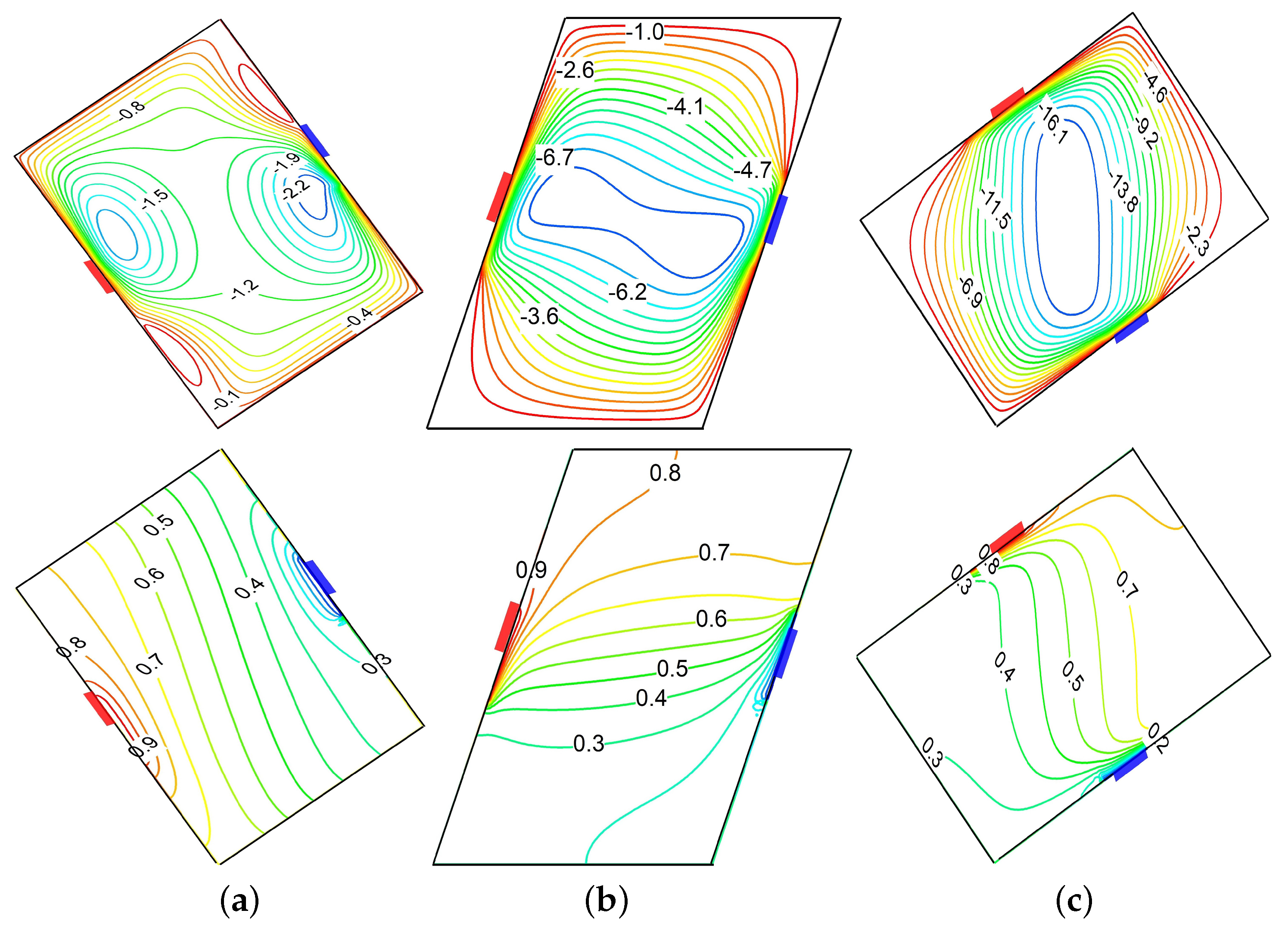 - Hyun, J.M.; Choi, B.S. Transient Natural Convection in a Parallelogram-Shaped Enclosure. Int. J. Heat Fluid Flow 1990, 11, 129–134. [Google Scholar] [CrossRef]