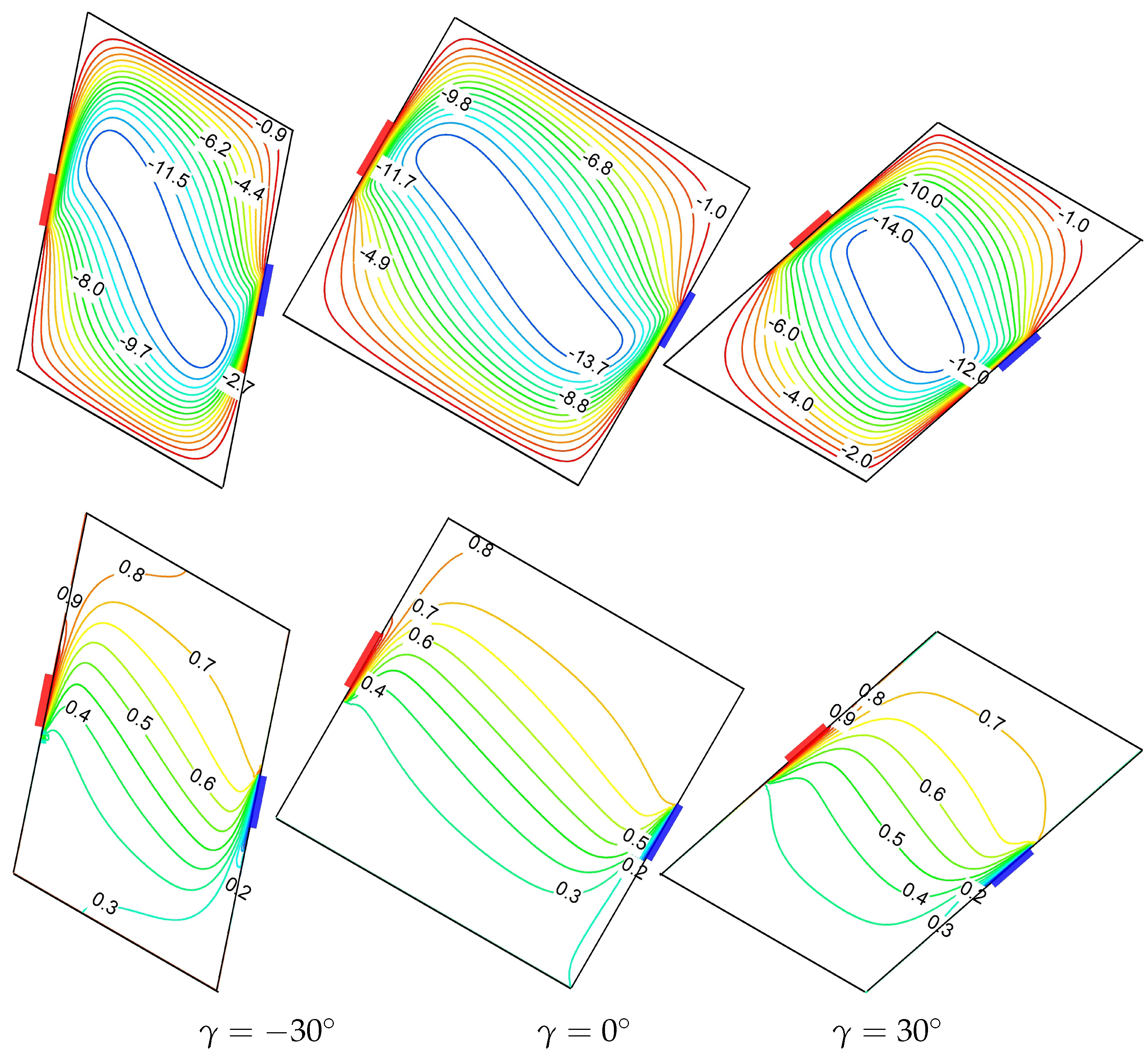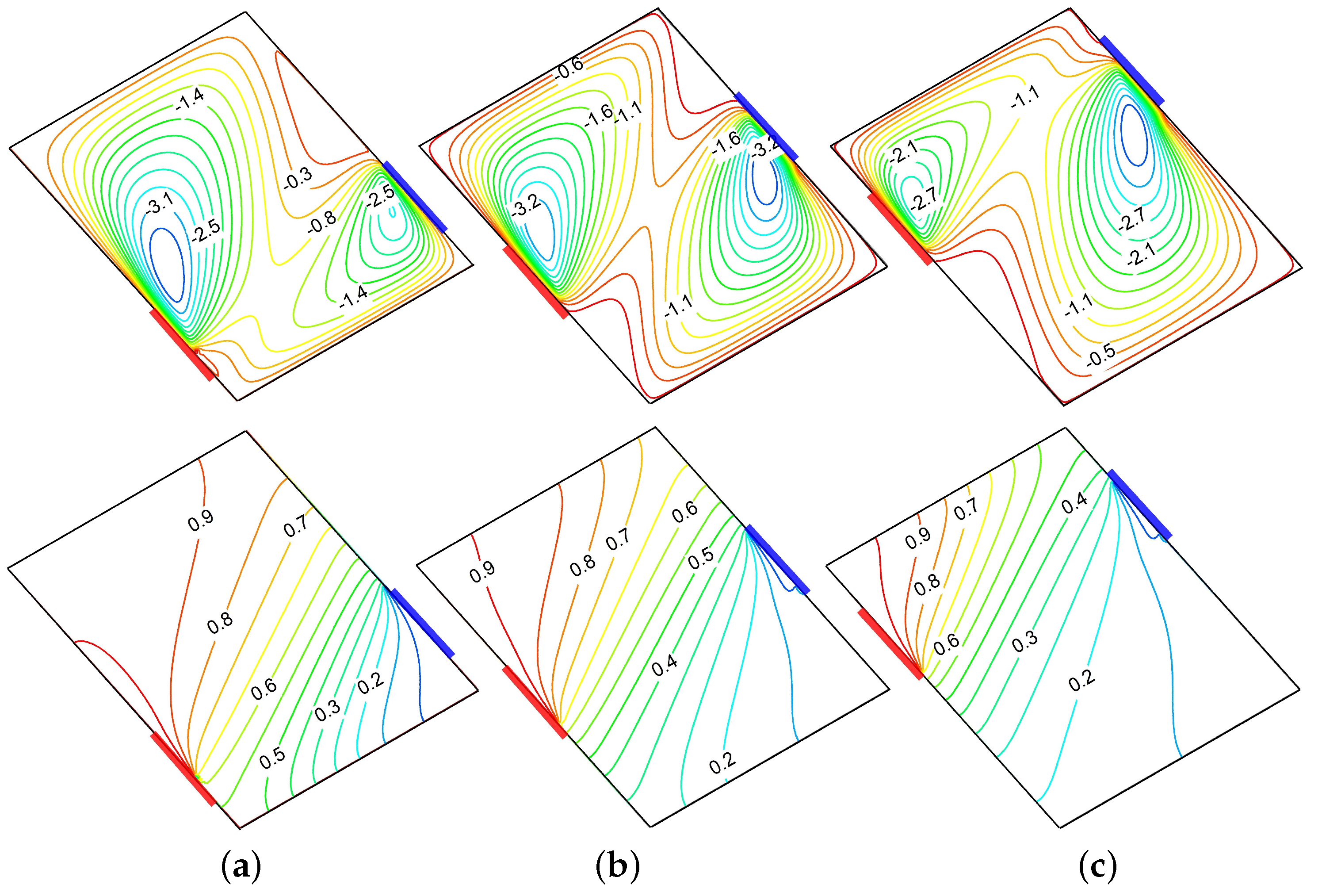 - Implementation of discrete heating/cooling source–sink pairs on inclined walls of the parallelogram, departing from conventional uniform heating or discrete heating on vertical walls.