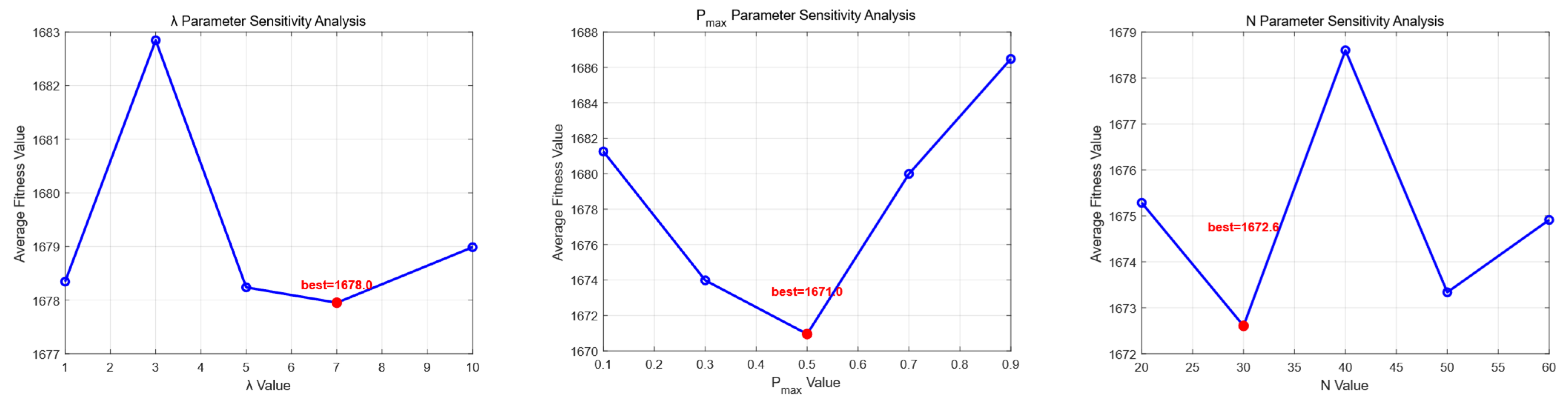 | CEC2022-F11 | Mean | 2.73 × 103 | 2.66 × 103 | 2.78 × 103 | 2.75 × 103 | 3.06 × 103 | 2.67 × 103 | 2.76 × 103 | 3.12 × 103 | 2.82 × 103 |
