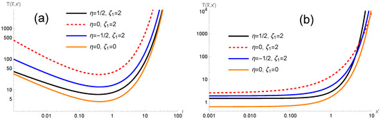 For intermediate times, the influence of and is evident as show in Figure 2a,b.
