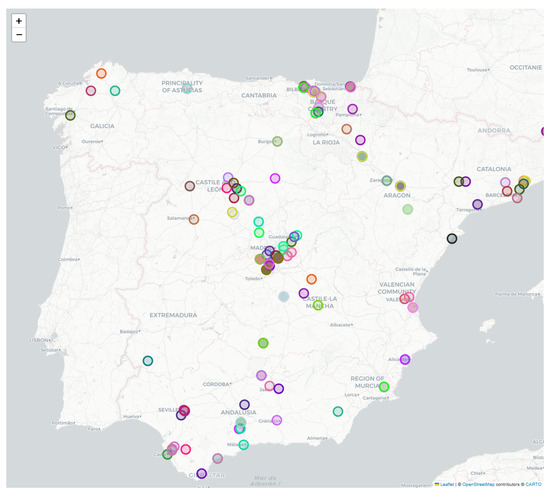 The travel cost (distance and time) between every pair of operation locations is deterministic and known beforehand. In our specific problem, distance and time are correlated measures since we assume that vehicles travel at 75 km/h. A constant speed is chosen based on the recommendation of company experts. This recommendation is considered reasonable as it aligns with the estimated average truck speed across different road types in Spain, which is approximately 75 km/h based on legal speed limits and typical operational conditions rather than on direct measurement. It should be noted that this simplification does not compromise the validity of the proposed methodology. There is a cost per kilometer traveled, in this case 1 monetary unit. Therefore, we can translate this travel cost into monetary units, length units, or time units as appropriate.