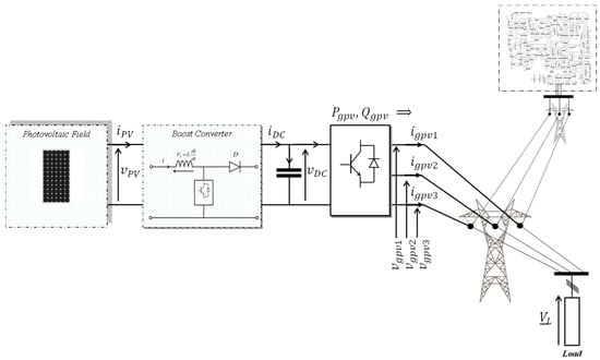 The system topology is shown in Figure 7, a detailed single-line diagram of the grid-connected PV system. The model comprises three primary components: