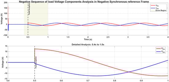 Figure 6. Temporal evolutions of the negative sequence components of the load voltages system relative to the negative synchronous reference frame (NSF).