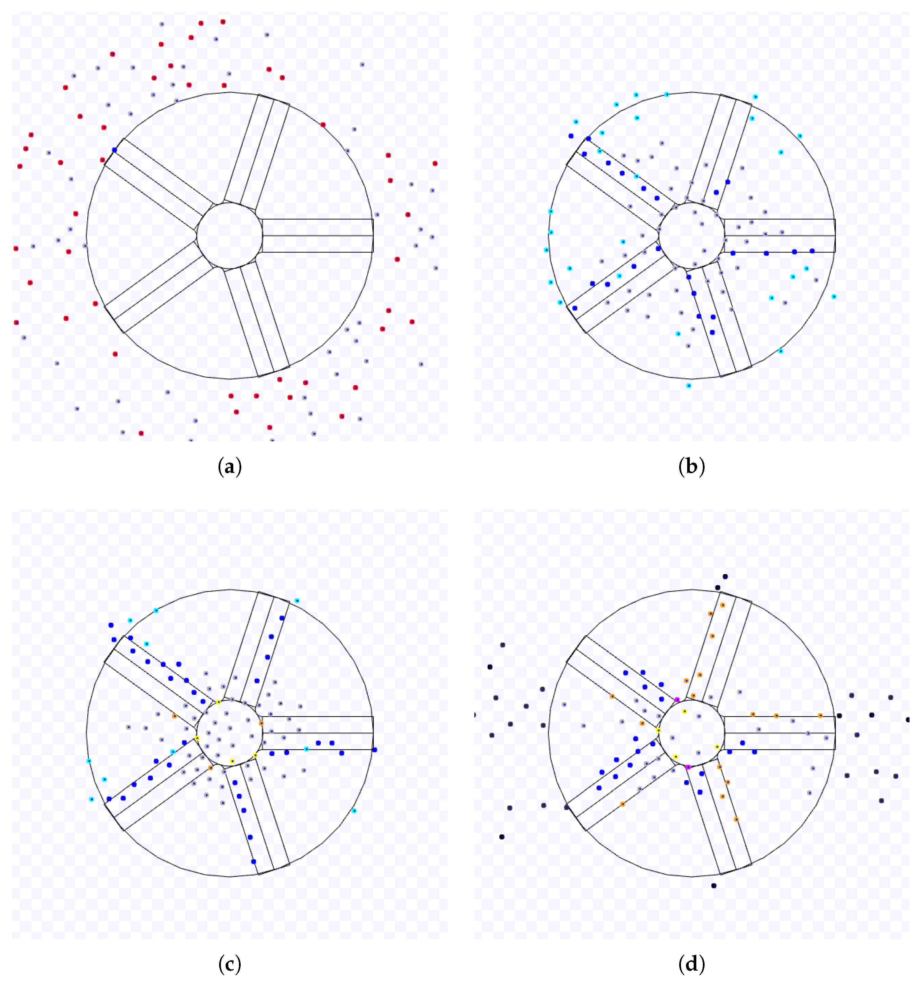 Fifthly, the presented algorithms may be adapted to three-dimensional robots and experimented with their type of movements due to the recent increase in usage of aerial robots. Because this paper considers robots and the target regions in a plane, the equations must be extended to three dimensions. Three-dimensional robots have different types of movement that may influence the presented algorithms differently. For instance, aircraft-like robots cannot stop in mid-air, and some aerial robots are controlled by Dubins paths.