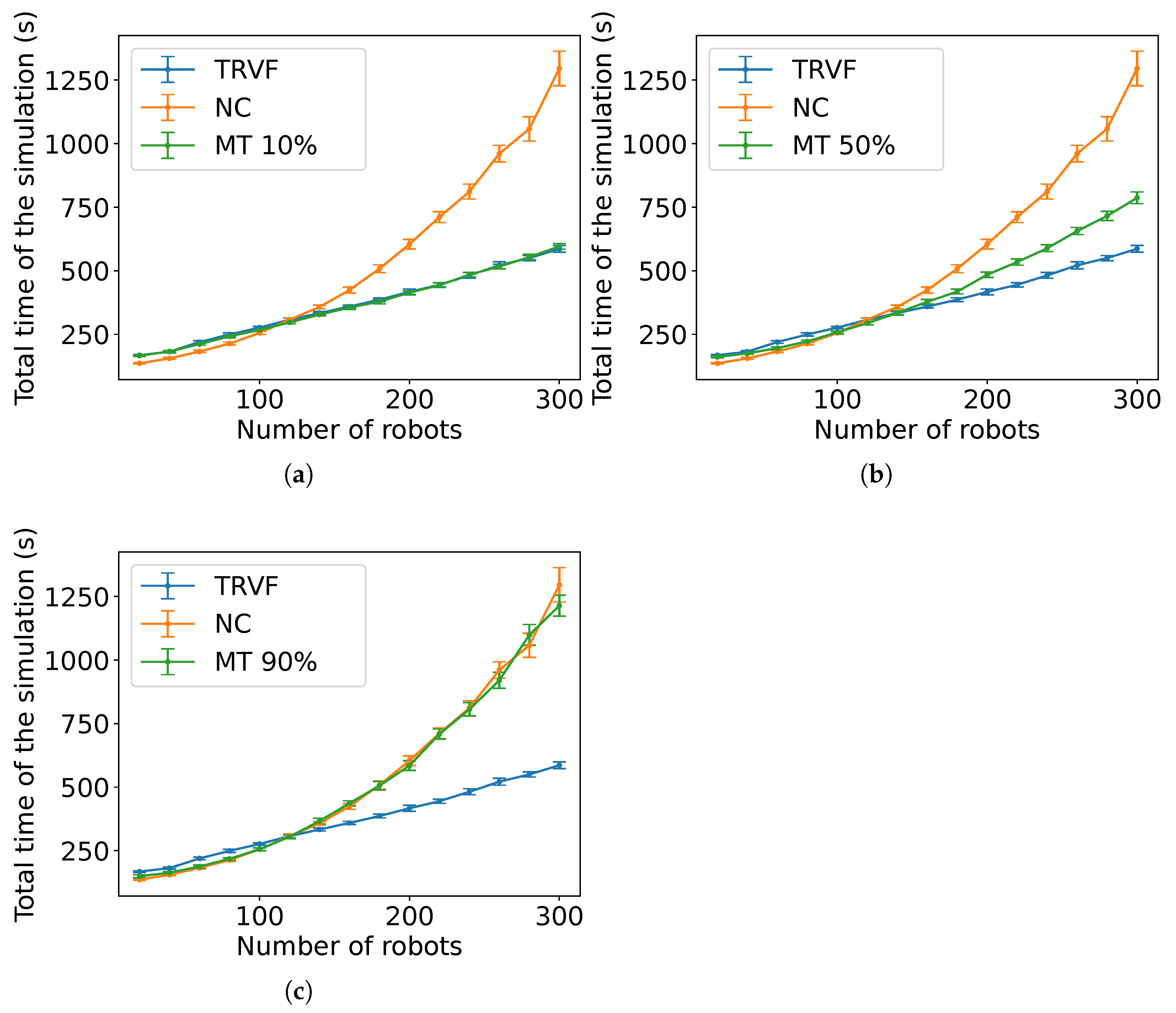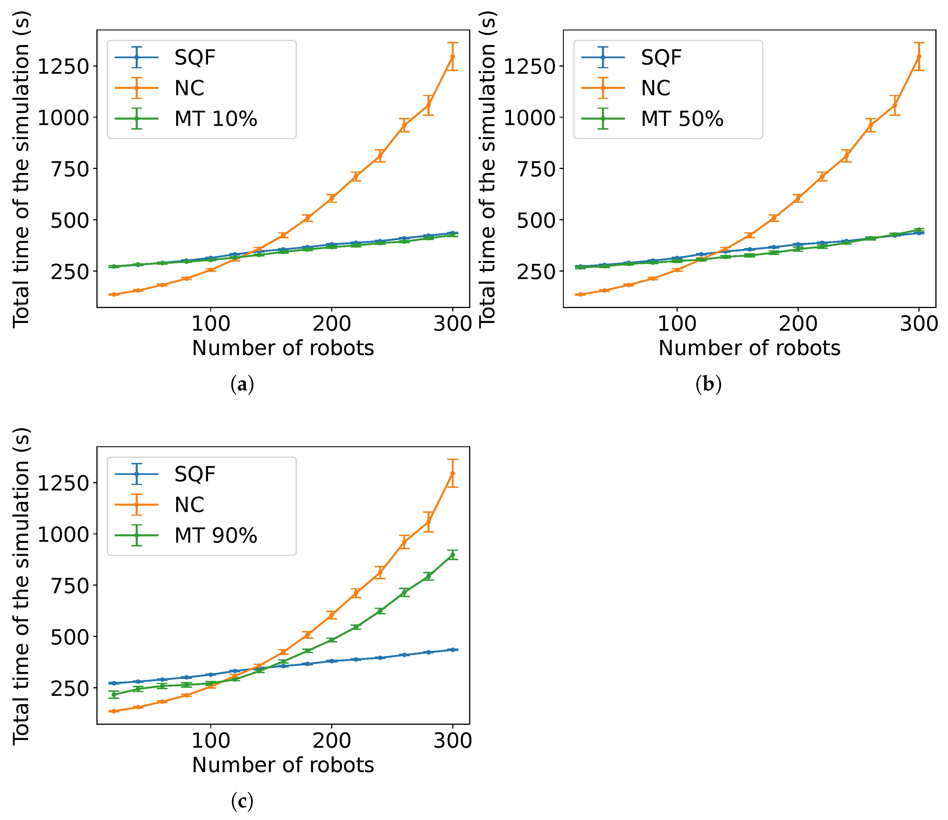 Figure 25 show the result from the experiments with MT for scenarios with the robots executing SQF and TRVF with different values of
