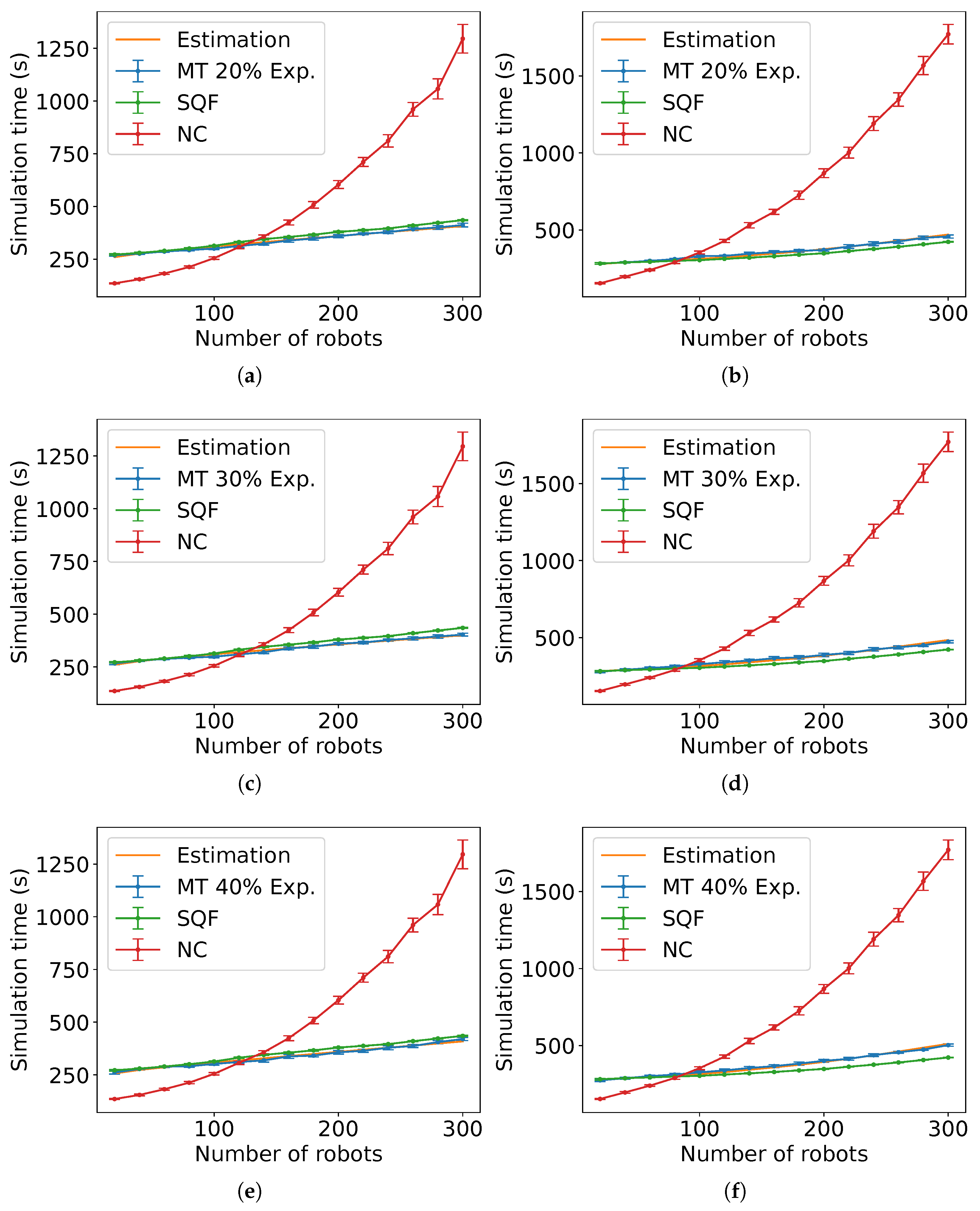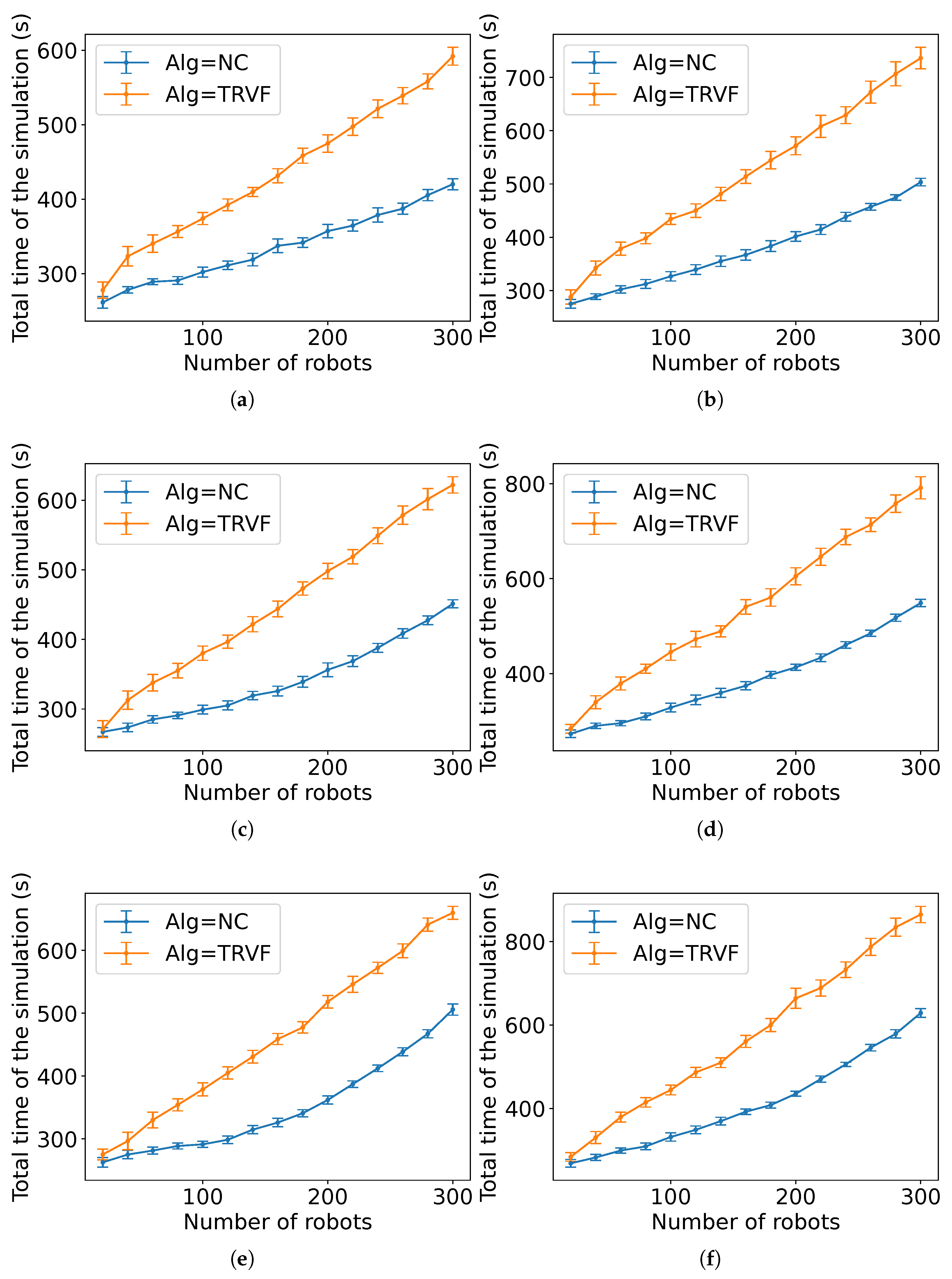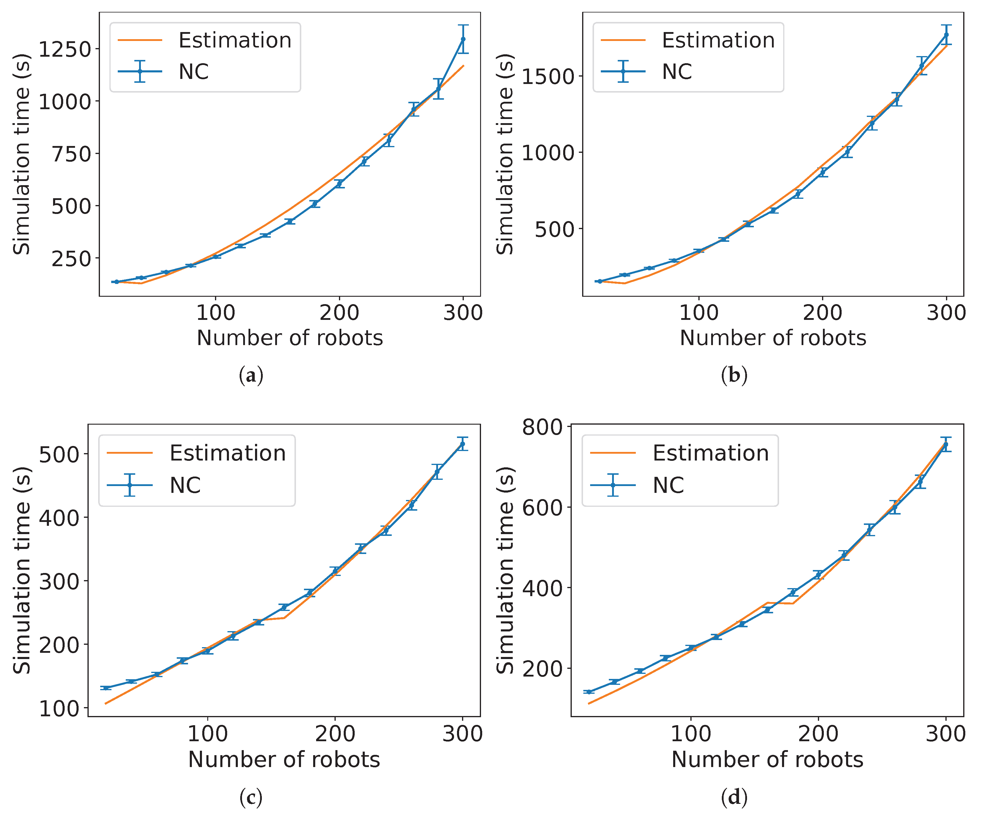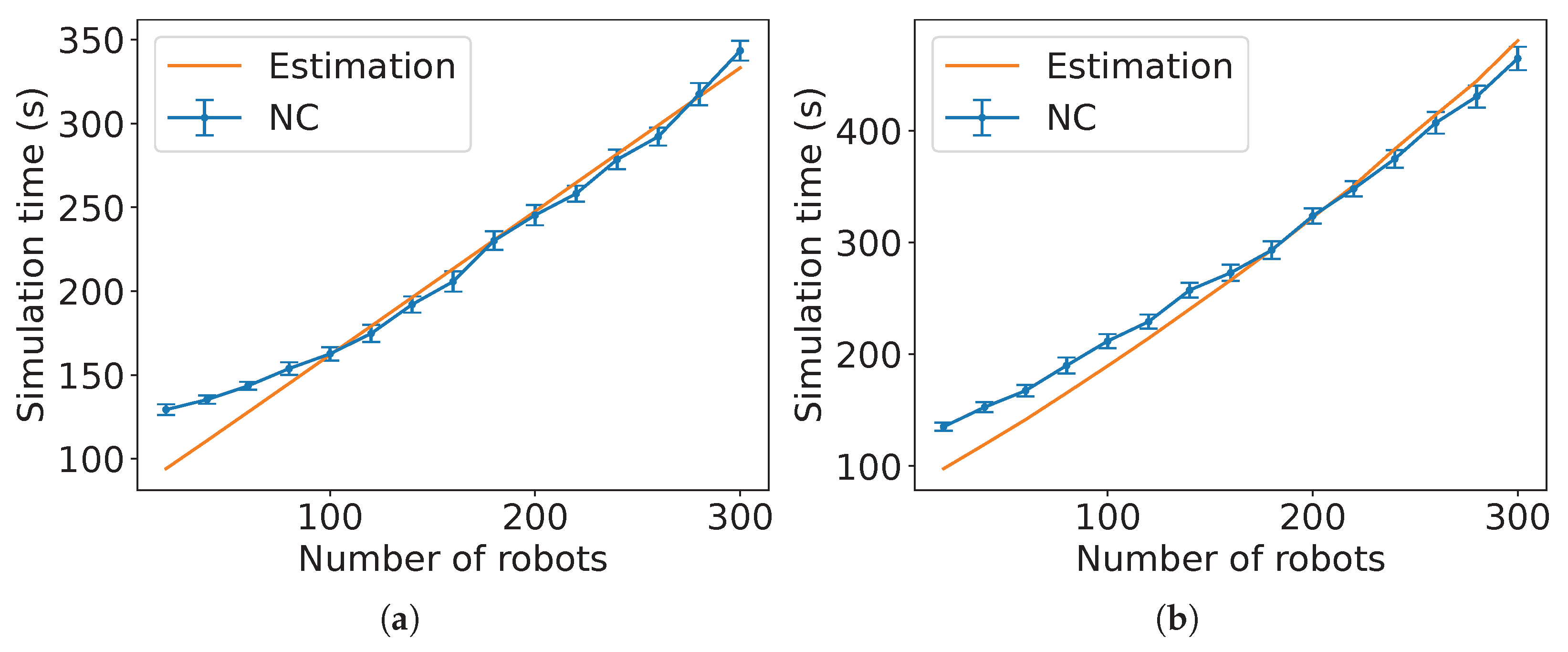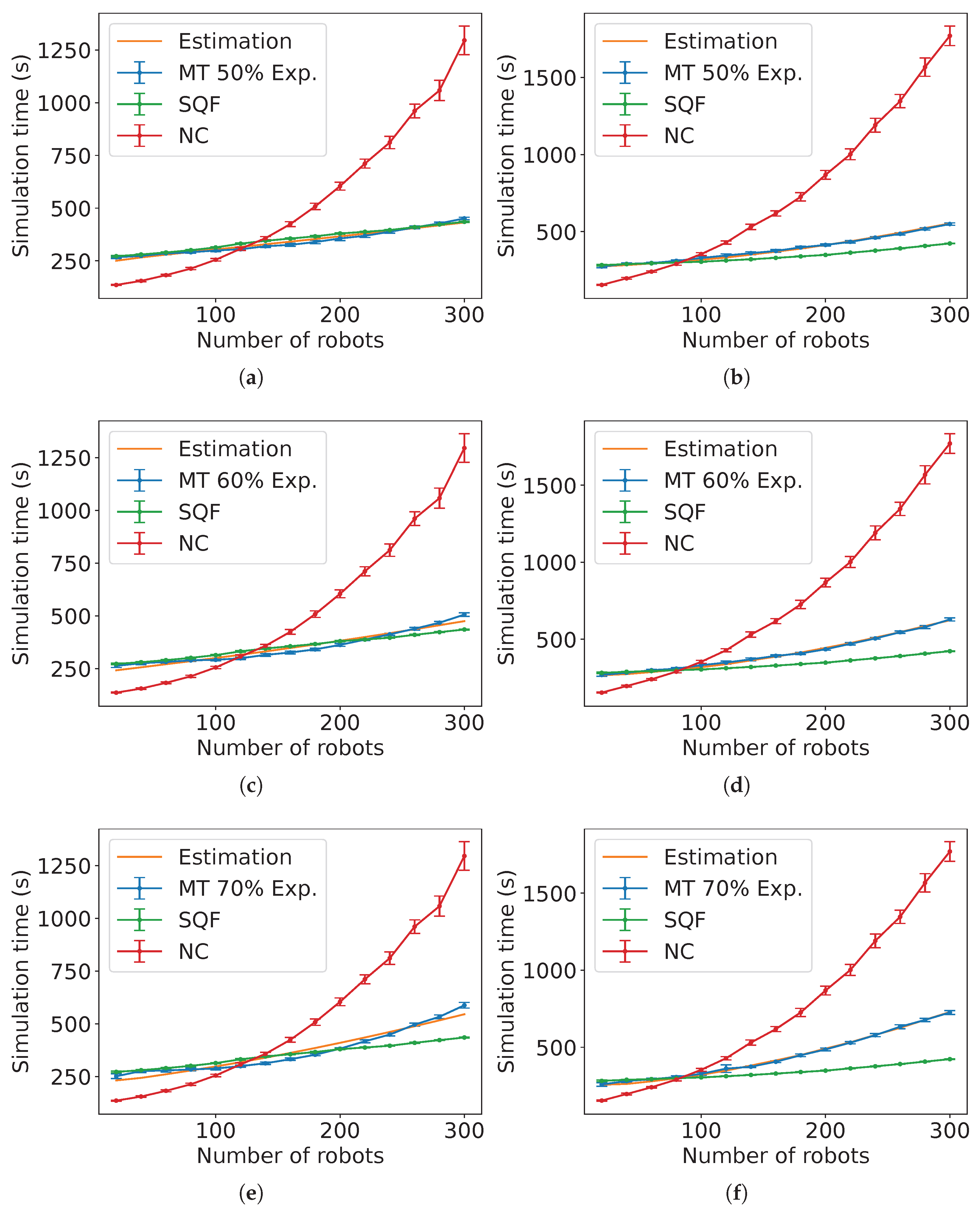 Figure A14), the estimated expected time is the sum of the estimated expected time of NC and the control algorithm followed by the robots in group B each multiplied by the constants