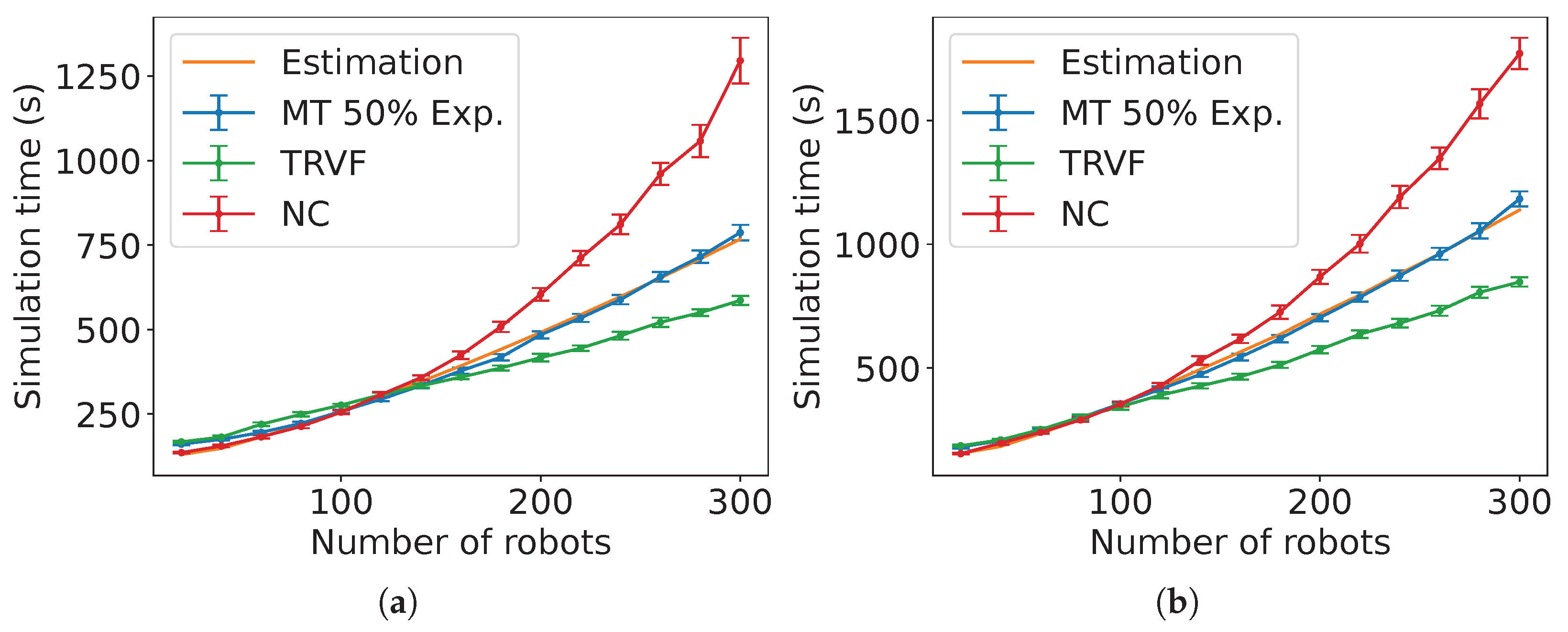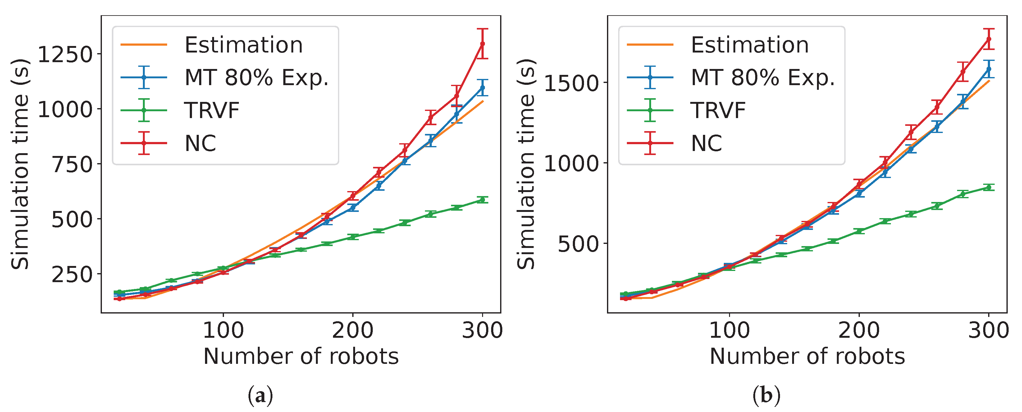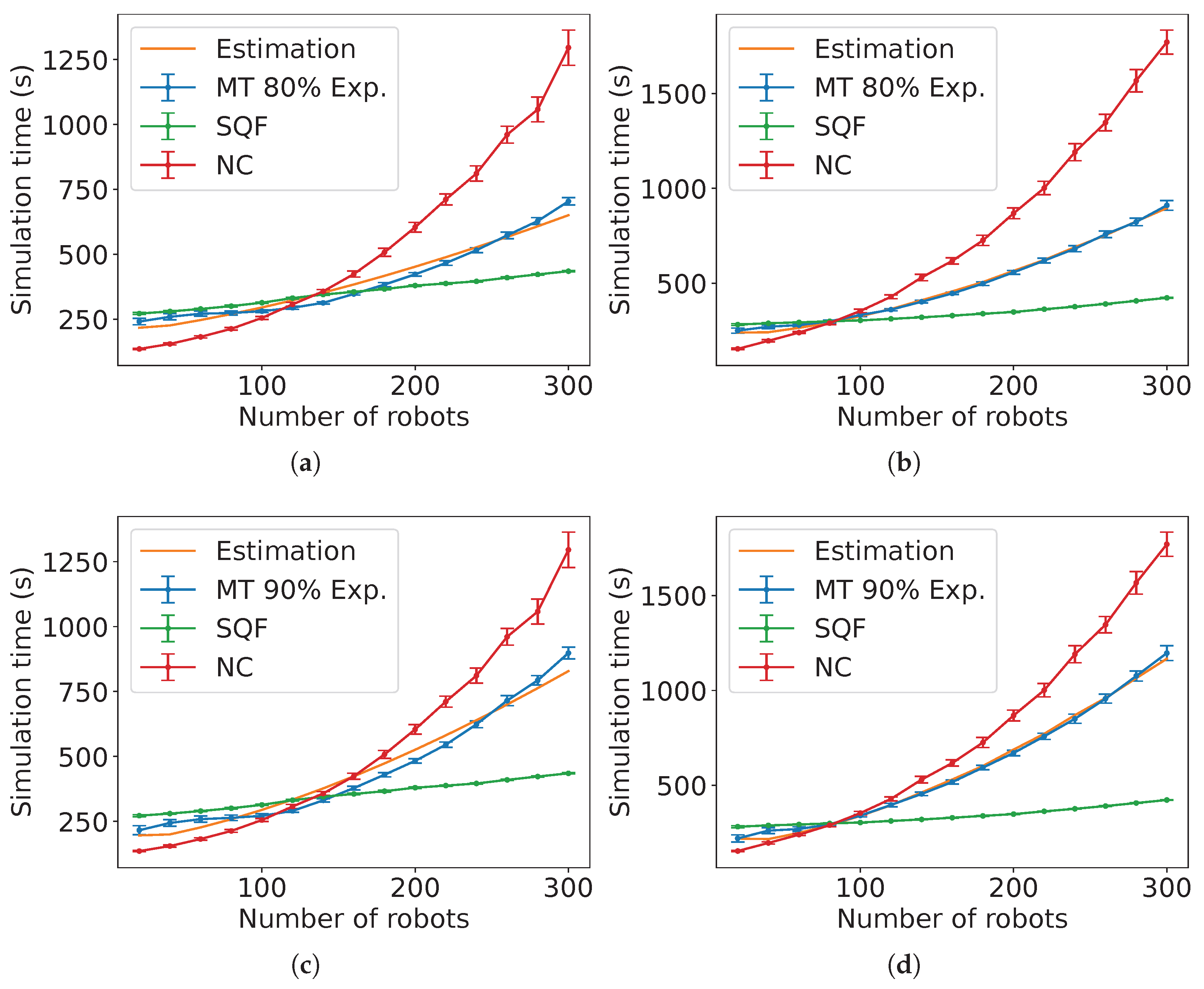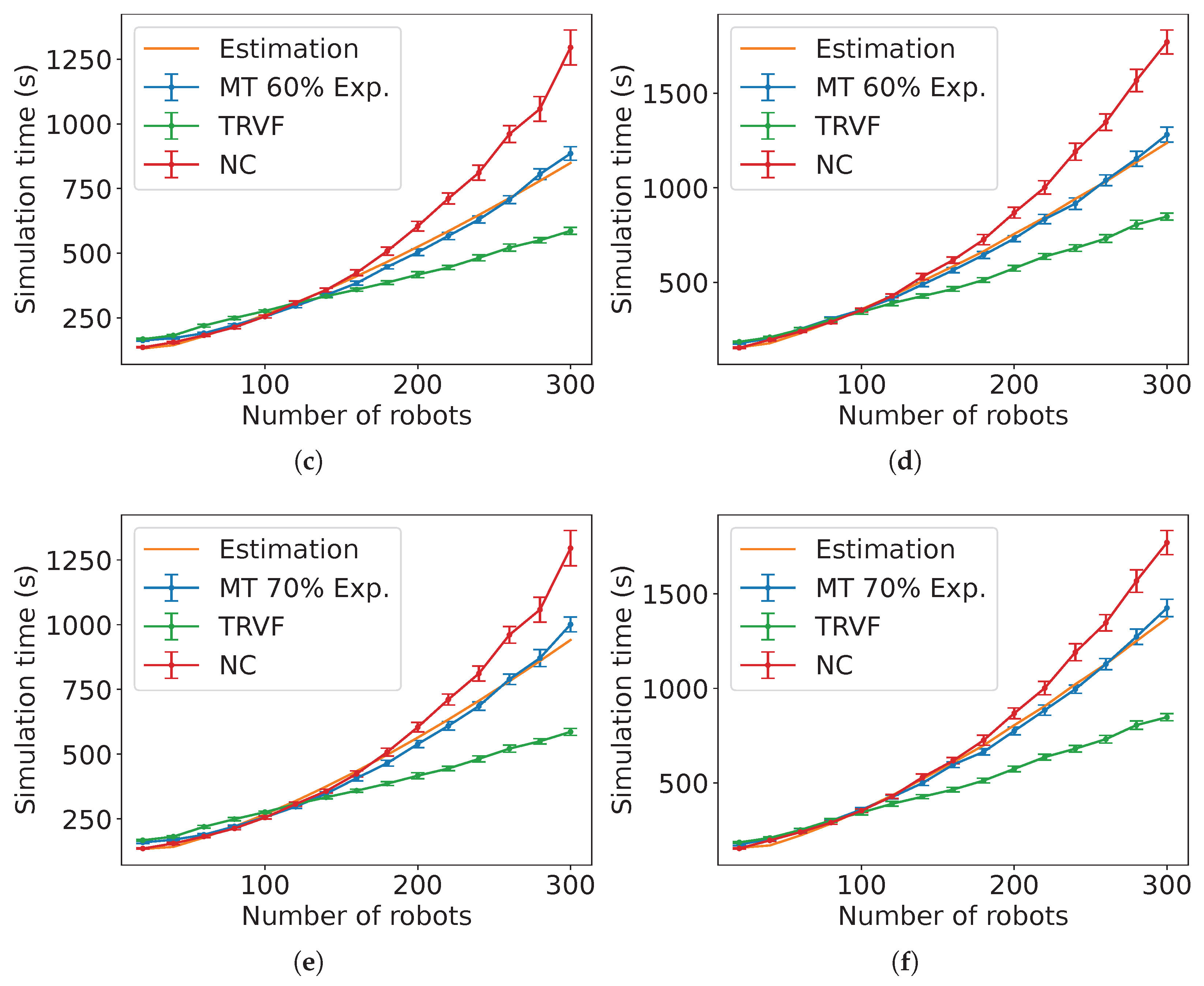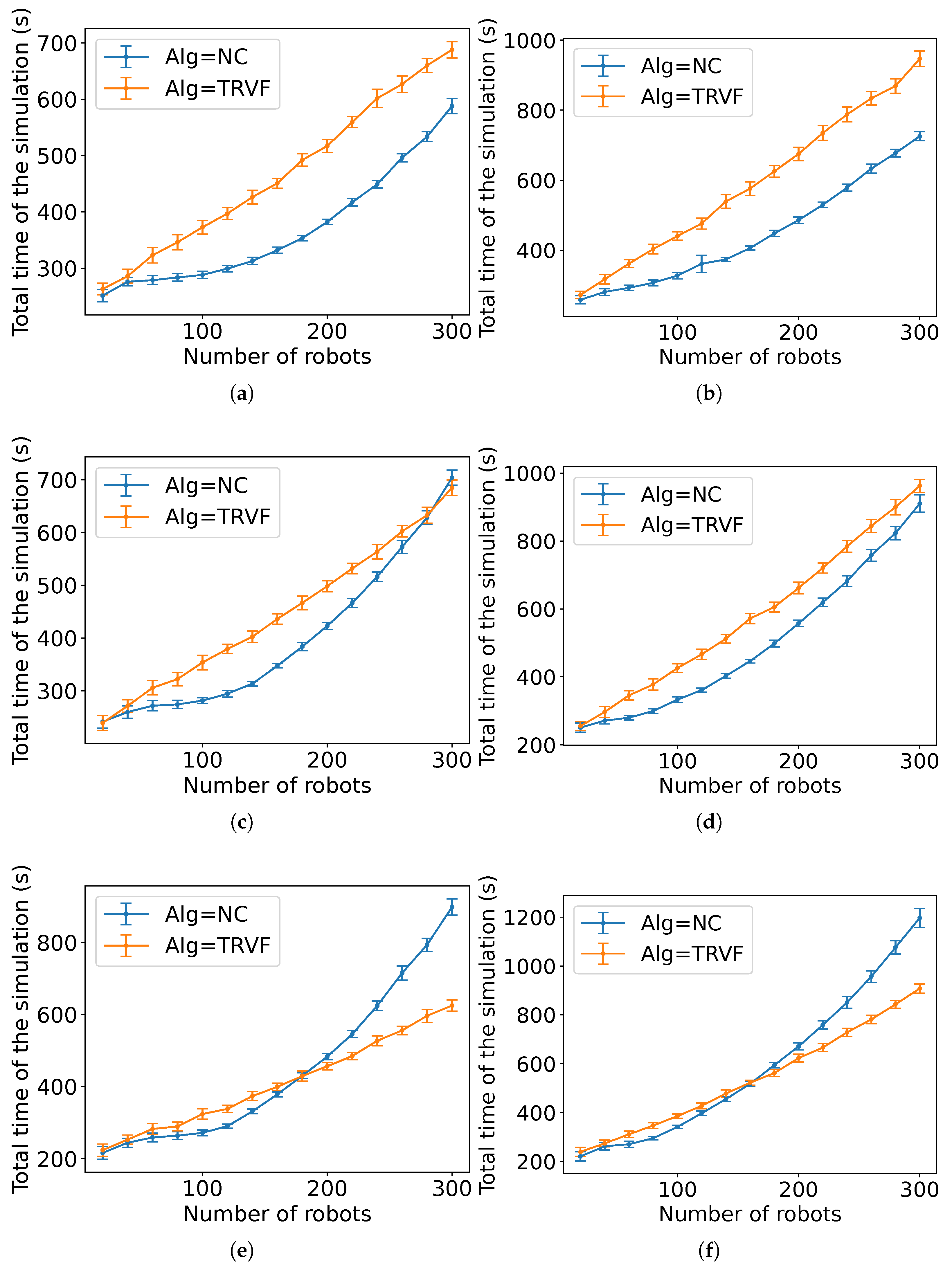 Figure A14), the estimated expected time is the sum of the estimated expected time of NC and the control algorithm followed by the robots in group B each multiplied by the constants