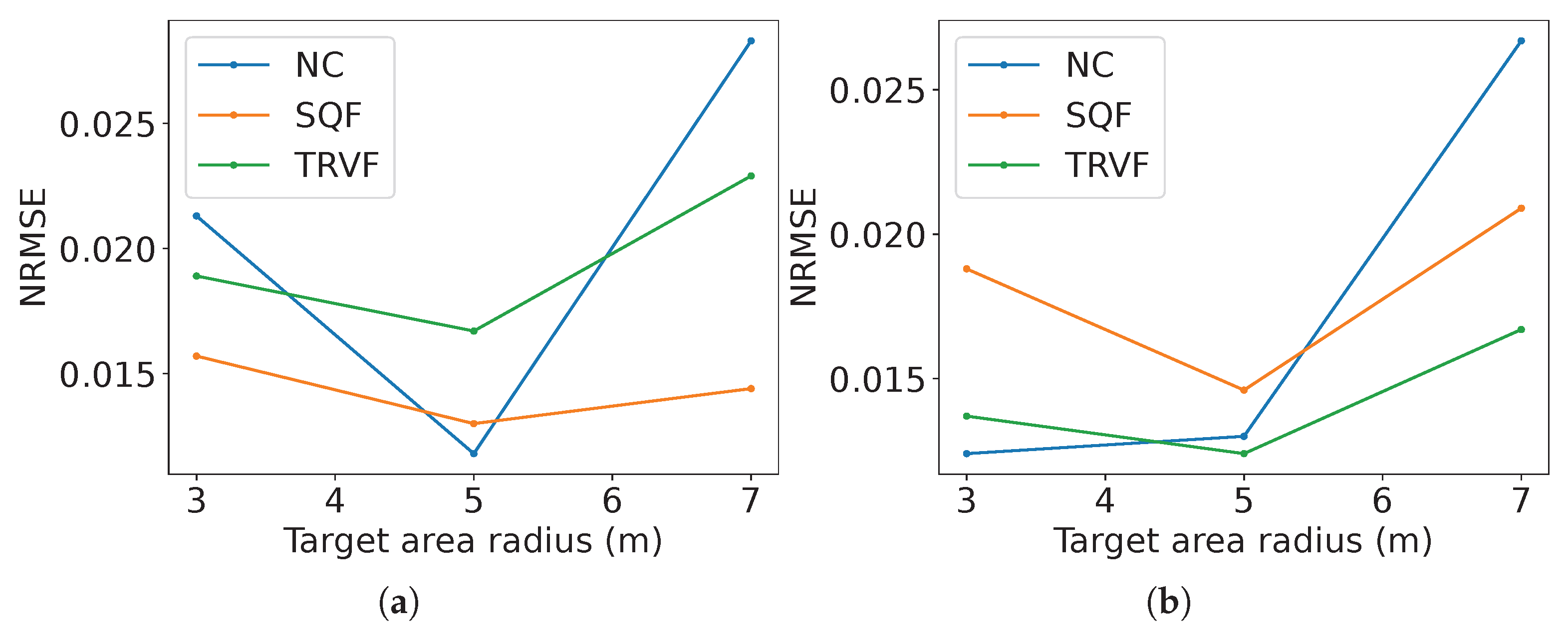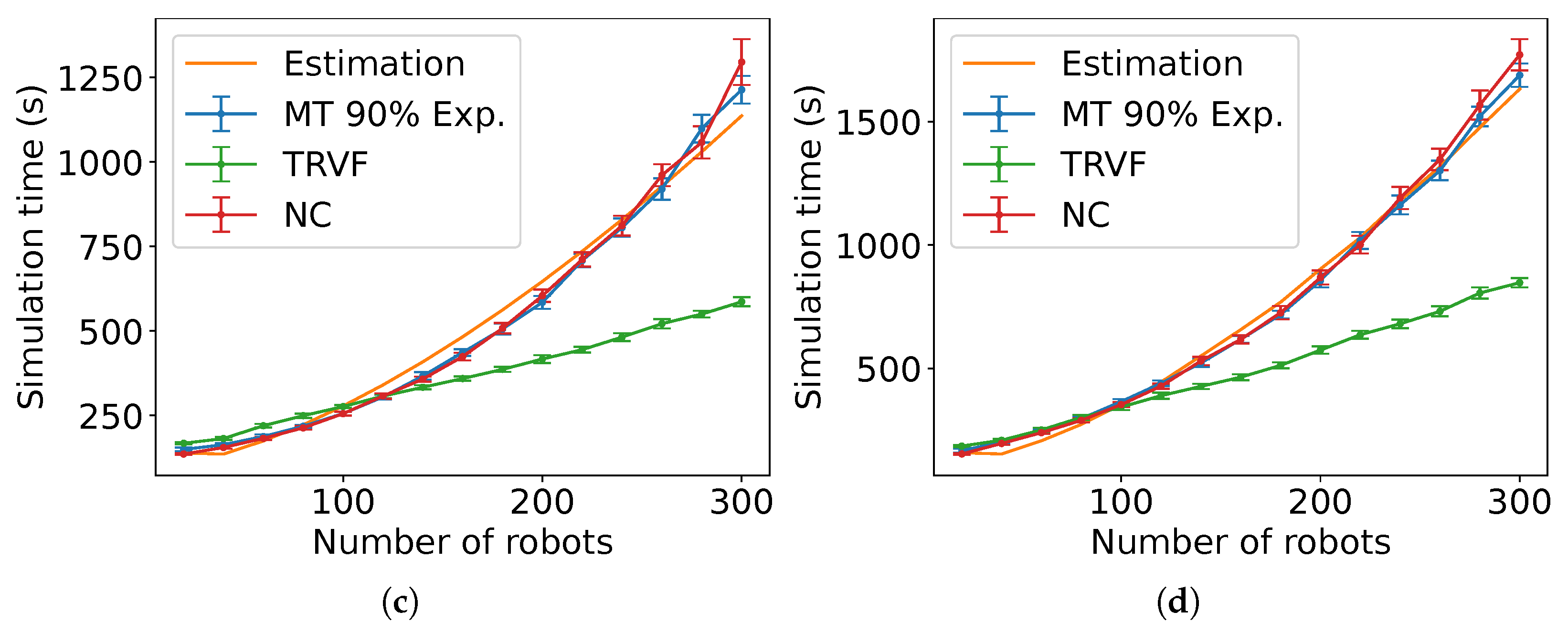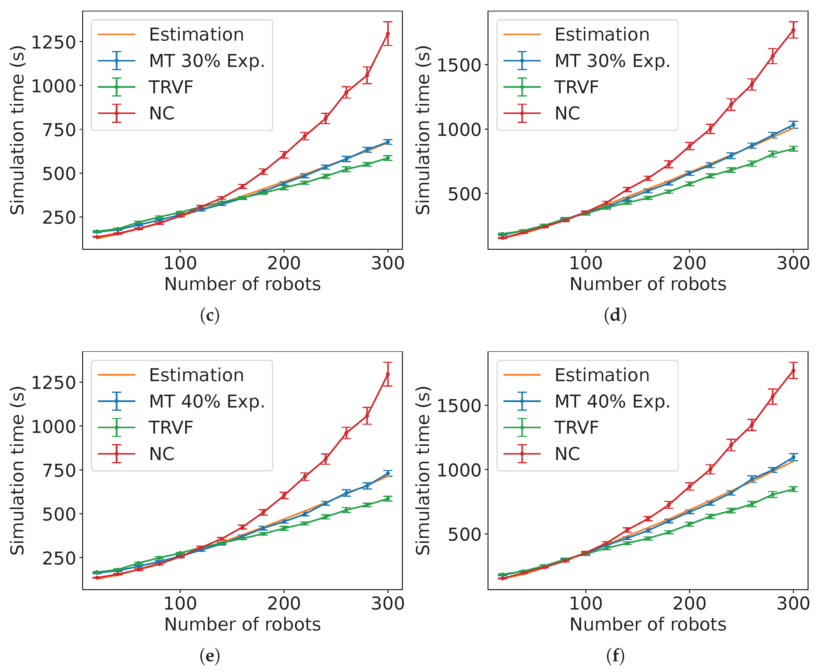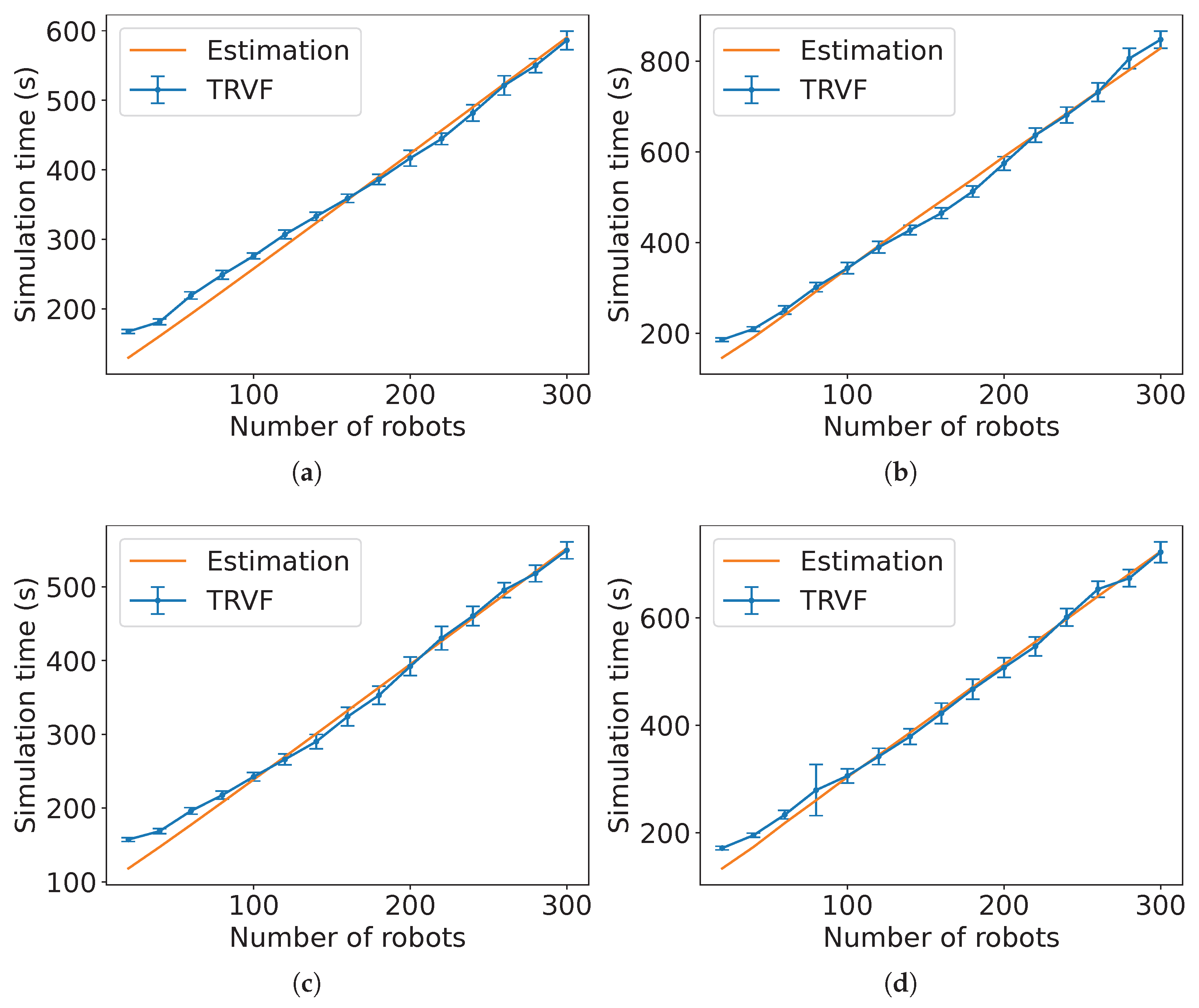 Figure 37b shows the results of the NRMSE for these estimations. Due to the estimation equation for TRVF working better for a higher number of robots, the ad hoc estimation reflects this result. Also, the NRMSE is higher for the holonomic case.