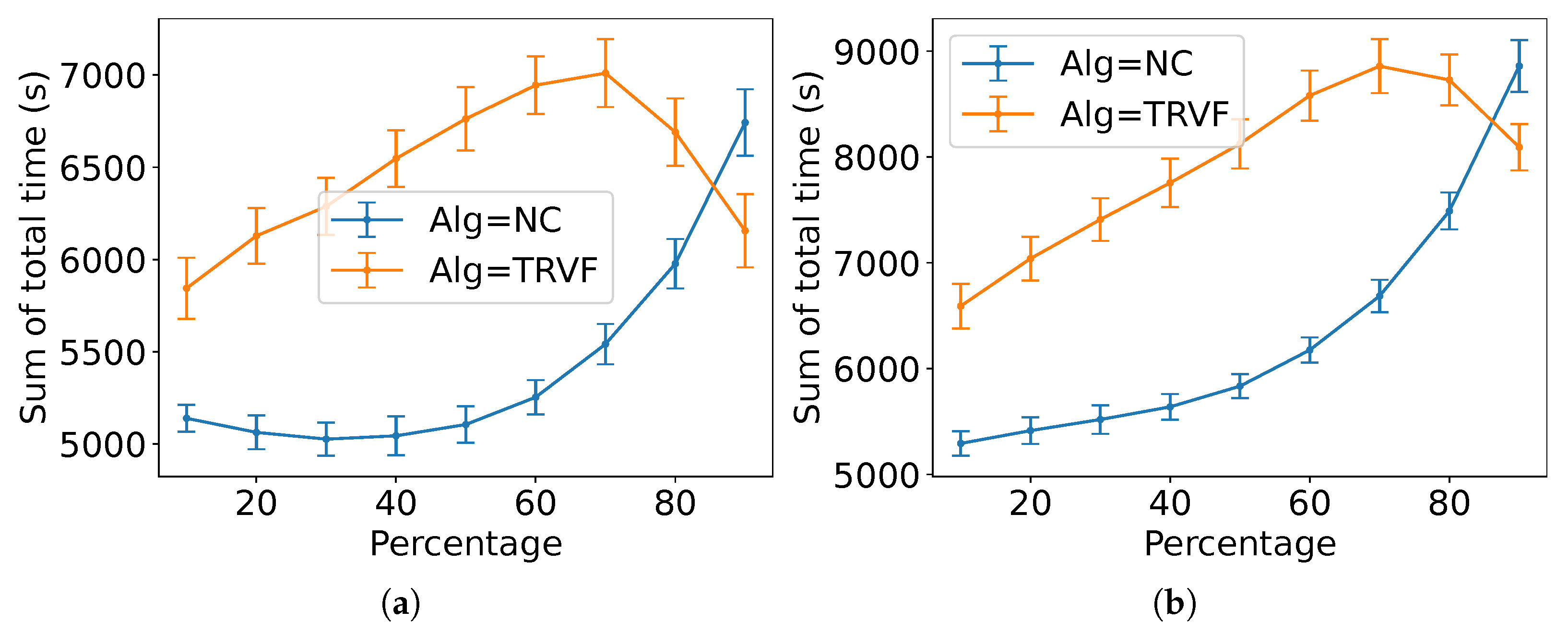 . As before, they have the task completion time from the experiments of TRVF and NC for reference. The figures for