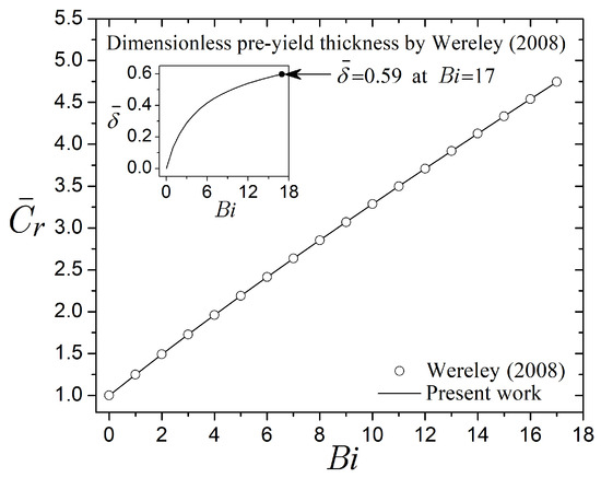 where is the dimensionless pre-yield thickness. Then, substituting the shear stress of the pre-yield region of Equation (29) into (49) gives: