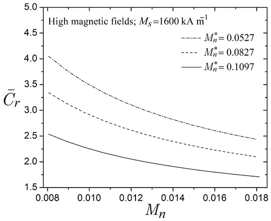 where is the dimensionless yield stress, which represents how effective the magnetic attraction between particles manifests as a yield stress [28]. In Equation (27), the Mason number incorporates the microscopic behavior of the MR fluid to determine the competition between viscous and magnetic stresses. Furthermore, represents the viscosity ratio of the MR fluid to the carrier fluid, thereby manifesting the effect of the addition of hard spherical particles to the Newtonian carrier fluid, as follows [2,39]: