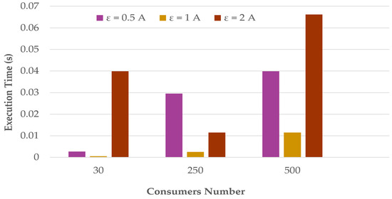 As shown in Table 1, in Ref. [12], the algorithm analyzes all possible connection models between loads and phases and chooses the best one. The solutions space is explored in detail, but this approach is more extensive, involves a longer calculation time, and has a higher probability of slow convergence depending on the case. In Ref [13], the proposed algorithm is called the improved multi-population genetic algorithm (IMPGA). Because the IMPGA works with more sub-populations and involves more selection and crossover operations, the computational process may be slower, and may require more computational resources. This algorithm has access to global solutions. In Ref. [14], two metaheuristic algorithms are proposed and compared as follows: genetic algorithm (GA) and particle swarm optimization (PSO). The GA and PSO are able to obtain solutions close to the global optimum, with the possibility of avoiding local minima. However, the computational resources used can be large. Both the GA and PSO depend on certain parameters as follows: n—the number of consumers (input data), population size (P), number of generations (G), number of particles (M), and number of iterations (I). The authors have used the following parameters for the GA: population size—100; number of generations—200; crossover rate (0.9); mutation rate (0.1); selection type—tournament; crossover type—uniform; and mutation type—one point. For PSO, a population of 50 particles has been used, and the inertia was set with a linear decrease from 0.9 to 0.4. In Ref. [15], the goal of the balancing algorithm is to have approximately equal current on each phase, so a range of ±0.5% of the average current was imposed. The algorithm ensures that the sum of the current on each phase remains within ±0.5% of the average current, so that the loads are balanced between the phases. This approach does not appreciate the physical limitations of the network, such as the constraint on the maximum load limit of the phase conductors. It is less flexible in the face of dynamic changes in the system than the proposed algorithm. However, it has the advantages of ease of implementation, relatively low or affordable cost, and the speed of the process is guaranteed by decisions made in real time, without a large calculation time. In Ref. [16], the PLB model designed is based on a multi-objective optimization, which ensures the minimization of the three-phase current imbalance and the minimum number of switching times. The algorithm proposed is based on the fast non-dominant genetic algorithm (NSGA-II). This model may require significant computing resources. A high-performance algorithm is proposed in [17], some of its characteristics being the following: applicable to both switchable and non-switchable consumers; operates with precise real-time data obtained from smart meters; and can operate in two modes: online and offline. Its performance is supported by the results obtained, but there are several practical limitations regarding the applicability of this algorithm, namely the following: the need for a high-performance IT structure of the electricity network, dependent on data quality if working in SMS mode for accuracy (these systems are more susceptible to technical problems than classic meters); the implementation is not simple, requiring integration with the database and smart grid systems of the distribution operator, which increases the operational complexity. Another PSO approach is presented in [18], where it has been used to minimize the unbalance coefficient in LV distribution networks. The authors have run the PSO-based optimization algorithm 60 times and reported the best solution among these runs, highlighting the stochastic nature of the method. Consequently, the algorithm does not guarantee convergence to the optimal solution in a single run. Although it has global solution-finding capability, the computational cost (number of iterations, execution time, and memory) can be high in some contexts, as consumers increase.