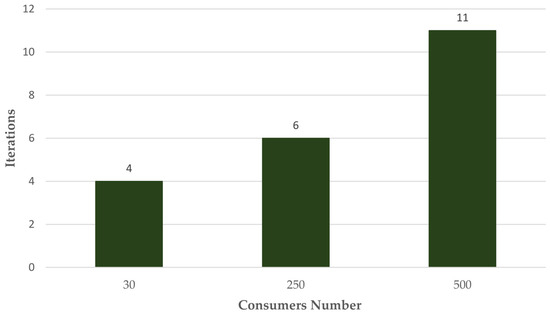 Empirical observations from the simulations revealed that, without limiting the number of reallocations, some consumers could repeatedly switch between phases, causing oscillatory behavior and preventing stable convergence. To mitigate this, a maximum number of switching operations per consumer was introduced, which, based on the simulation results, empirically eliminated the oscillatory behavior of the objective function and improved the algorithm’s convergence in the simulated cases. This restriction is defined as follows: