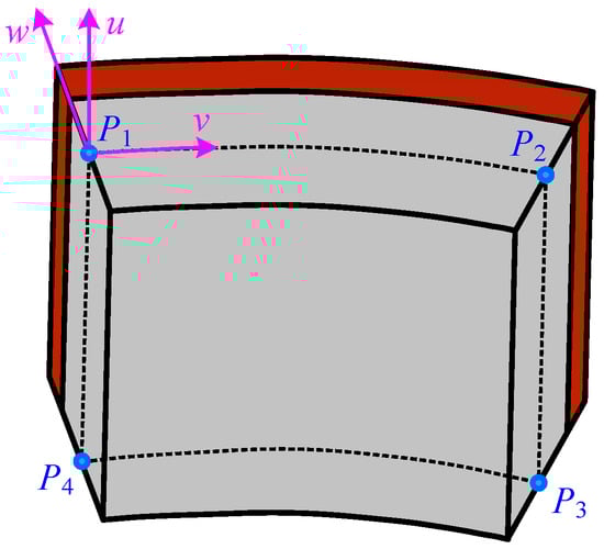 The displacement vector of any node on the surface of a unit can be expressed as follows:
