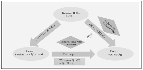 Moreover, Figure 1 demonstrates that, under the protection of the insurance mechanism, the potential loss borne by the data asset holder is reduced, thereby enhancing the value of the pledge financing to a certain extent. The specific increase can be defined as . We name this model the model, as it provides an intuitive and integrated framework for understanding insurance, financing, and risk management of data assets.
