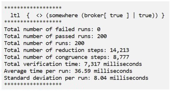 - Holzmann, J.G. The Model Checker SPIN. IEEE Trans. Softw. Eng. 1997, 23, 279–295. [Google Scholar] [CrossRef]
