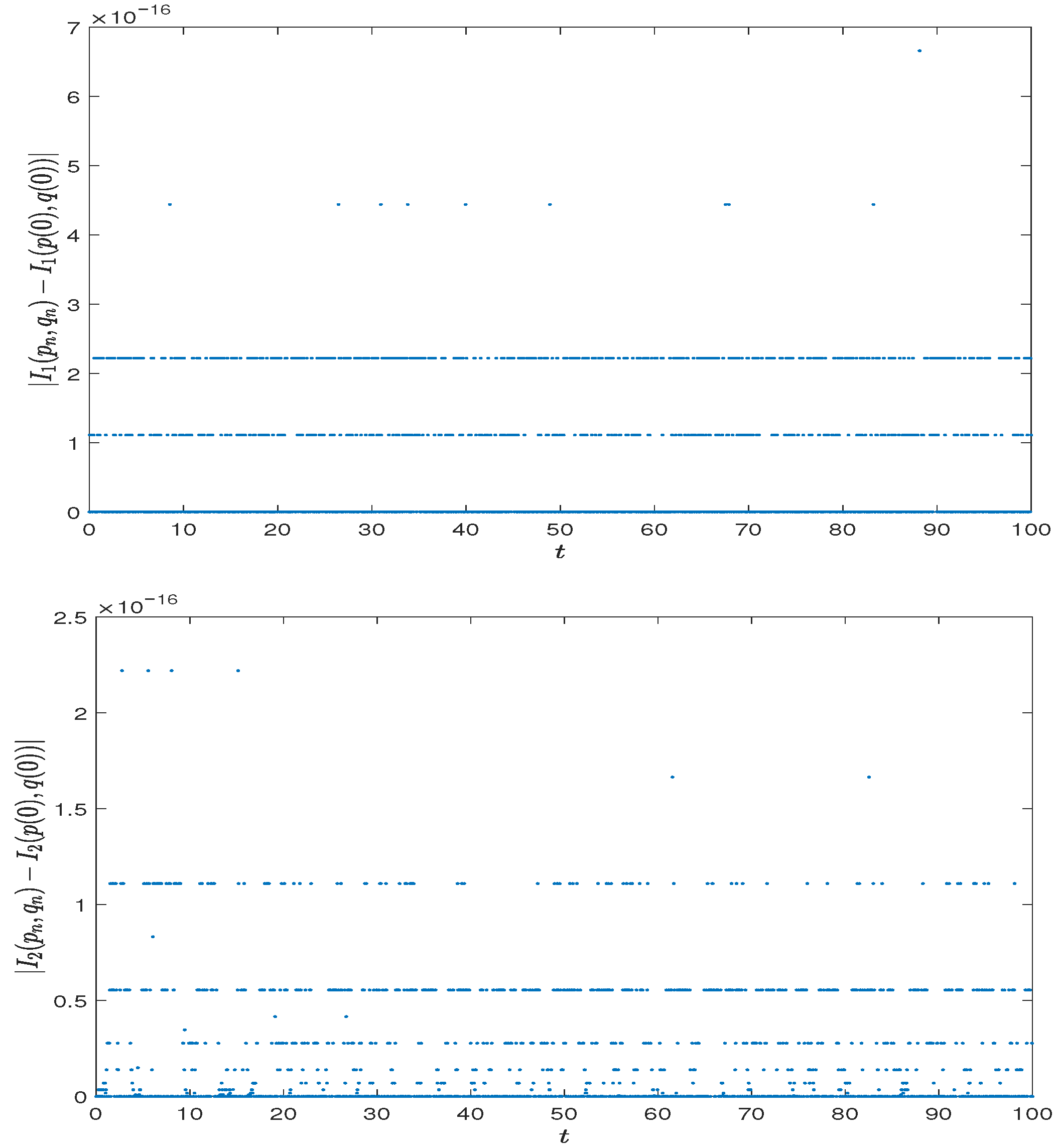 15. Dahlby, M.; Owren, B.; Yaguchi, T. Preserving multiple first integrals by discrete gradients. J. Phys. A Math. Theor. 2010, 44, 1651–1659. [Google Scholar] [CrossRef]