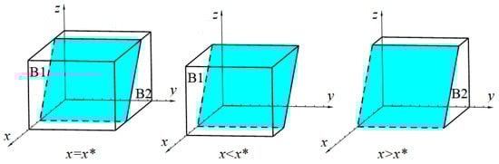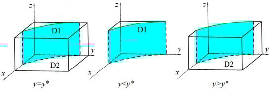 In Figure 4, the volume of is the probability of the farmers’ stable choice of traditional means of production, and the volume of is the probability of stable choice of the new quality means of production. Similarly, applying the same integration methodology, after calculation, we obtain