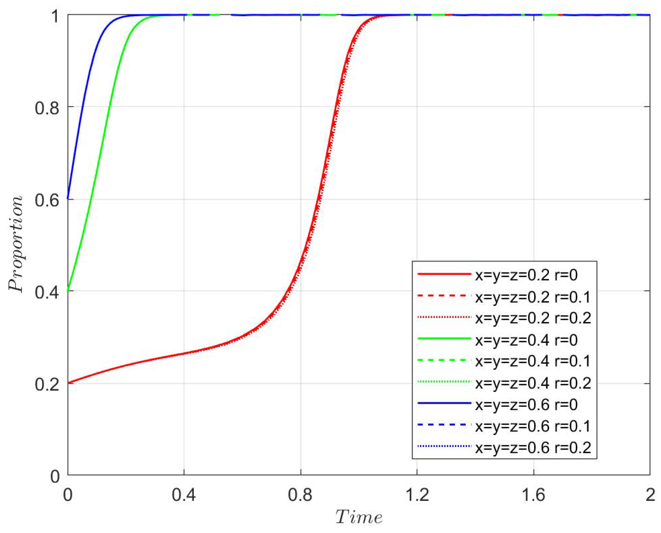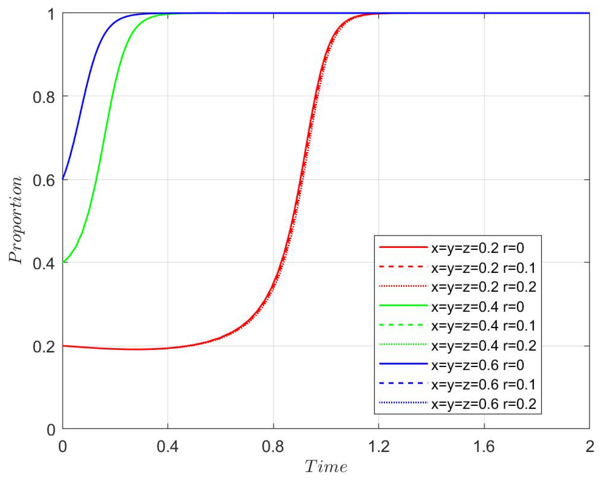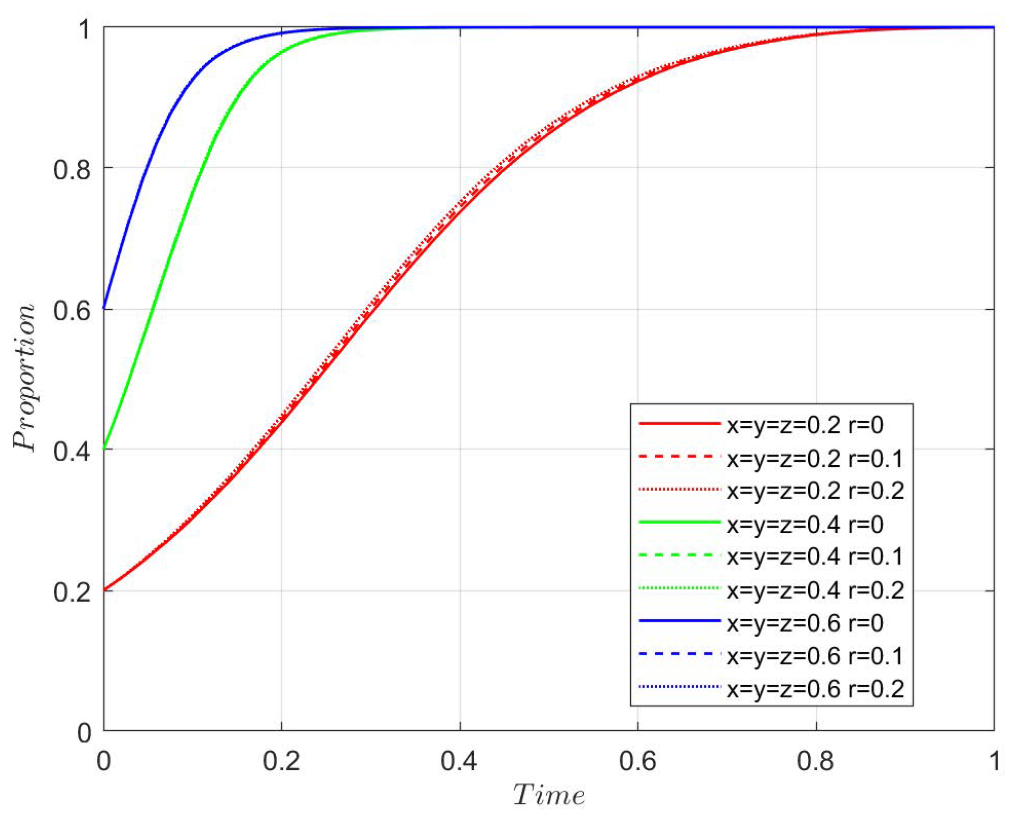 Figure 10. The influence of variations in r on the evolutionary outcomes of the system.