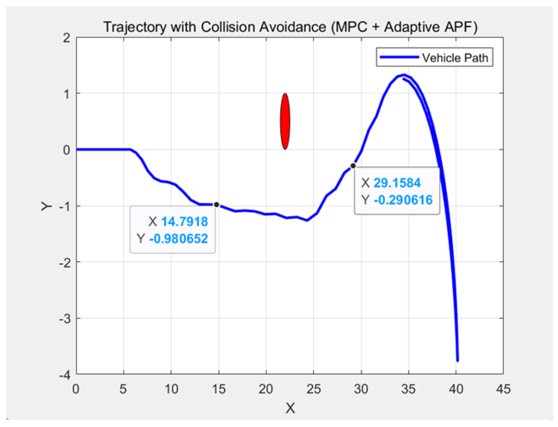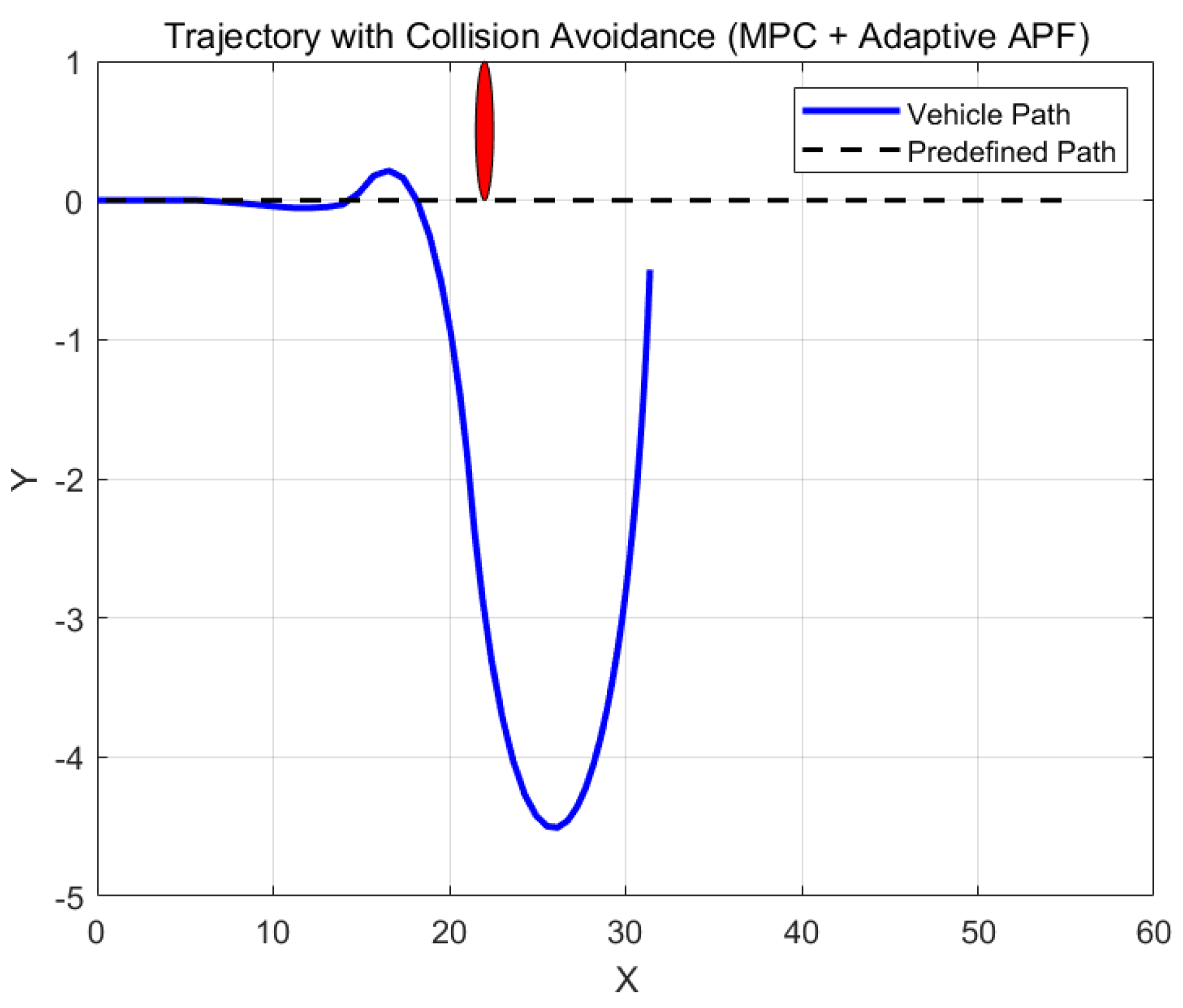 | title(‘Trajectory with Collision Avoidance (MPC + Adaptive APF)’); |