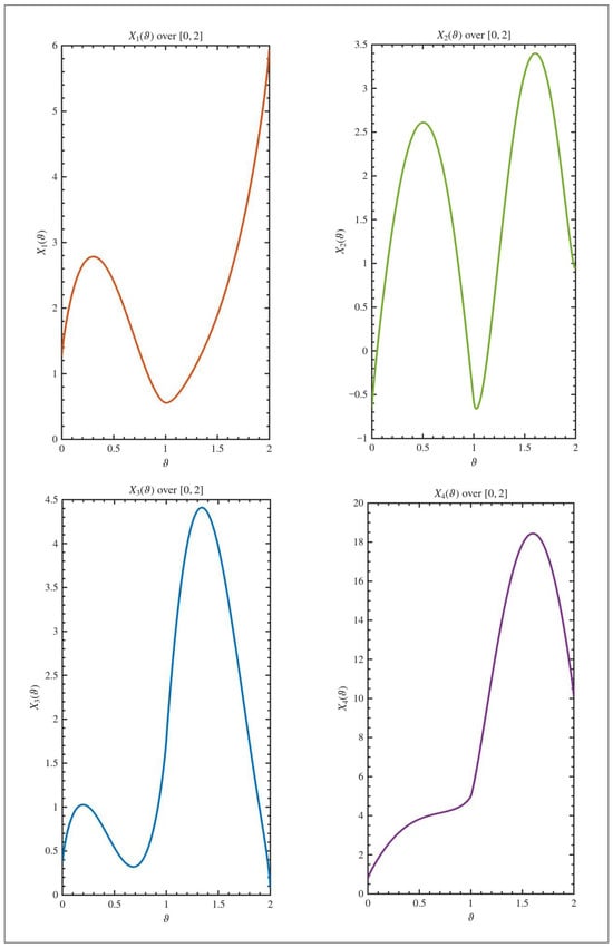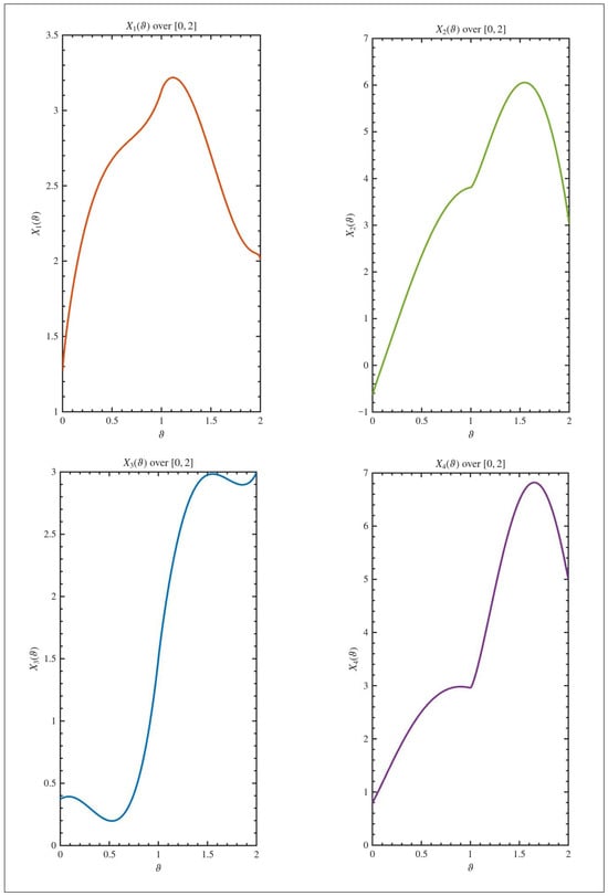 with and , using the conformable fractional derivative, where is the identity matrix, the operator signifies the Caputo fractional derivative of order and and the lower limit is taken to be zero; is a solution satisfying (1). For every , represents the control input, , , , and are , , , and constant real nonzero matrices, respectively. Cuchta et al. [34] investigated linear quadratic tracking problems. Additional theoretical and application aspects are explored in studies by Zhang et al. [20], Biswal et al. [21], Das and Samanta [23], Bouazza et al. [24], Boudjerida and Seba [25], Fiuzy and Shamaghdari [26], and Singh and Pandey [31]. In 2025, Sadek [33] studied the exact solutions and controllability of (1).