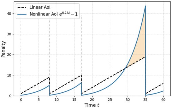 Comparison between Nonlinear AoI Function and Linear AoI Function.
