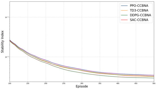 Figure 6 demonstrates the control stability variation curves based on different algorithms, and the PPO-CCBNA algorithm exhibits higher stability. This is mainly due to the efficient exploration of the state space and the effective estimation of the global value function of the PPO-CCBNA algorithm. Through this approach, PPO-CCBNA is able to predict the system behavior more accurately and control it effectively, thus avoiding drastic fluctuations in the strategy and ensuring the smoothness and stability of the control process.