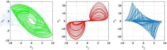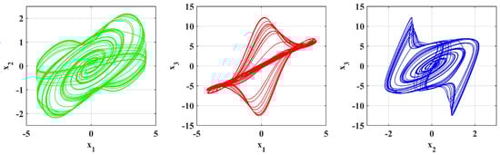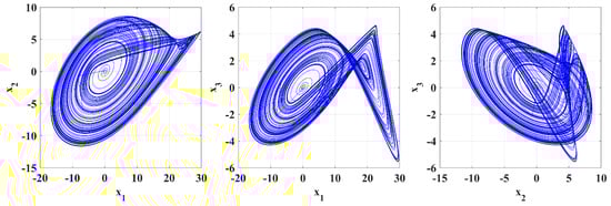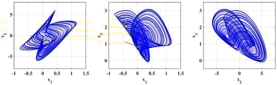 The modeling of chaotic systems has been a highly researched area because of its wide applications in natural and technical sciences [,]. Chaotic systems have complex modeling, phase diagrams, algorithms, Lyapunov analysis, and monitoring of chaotic behavior while managing model parameters to integrate them into electrical circuits [].
